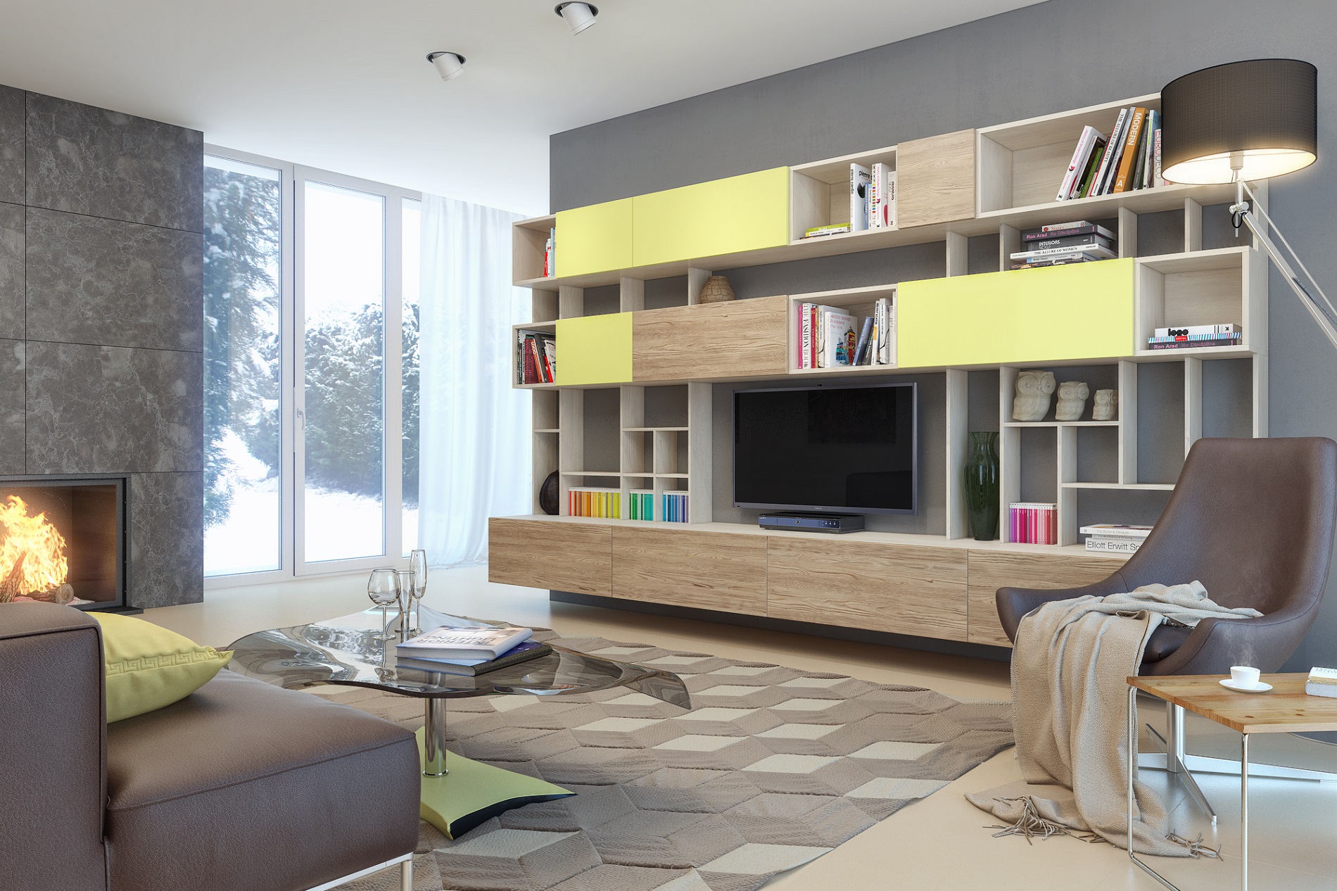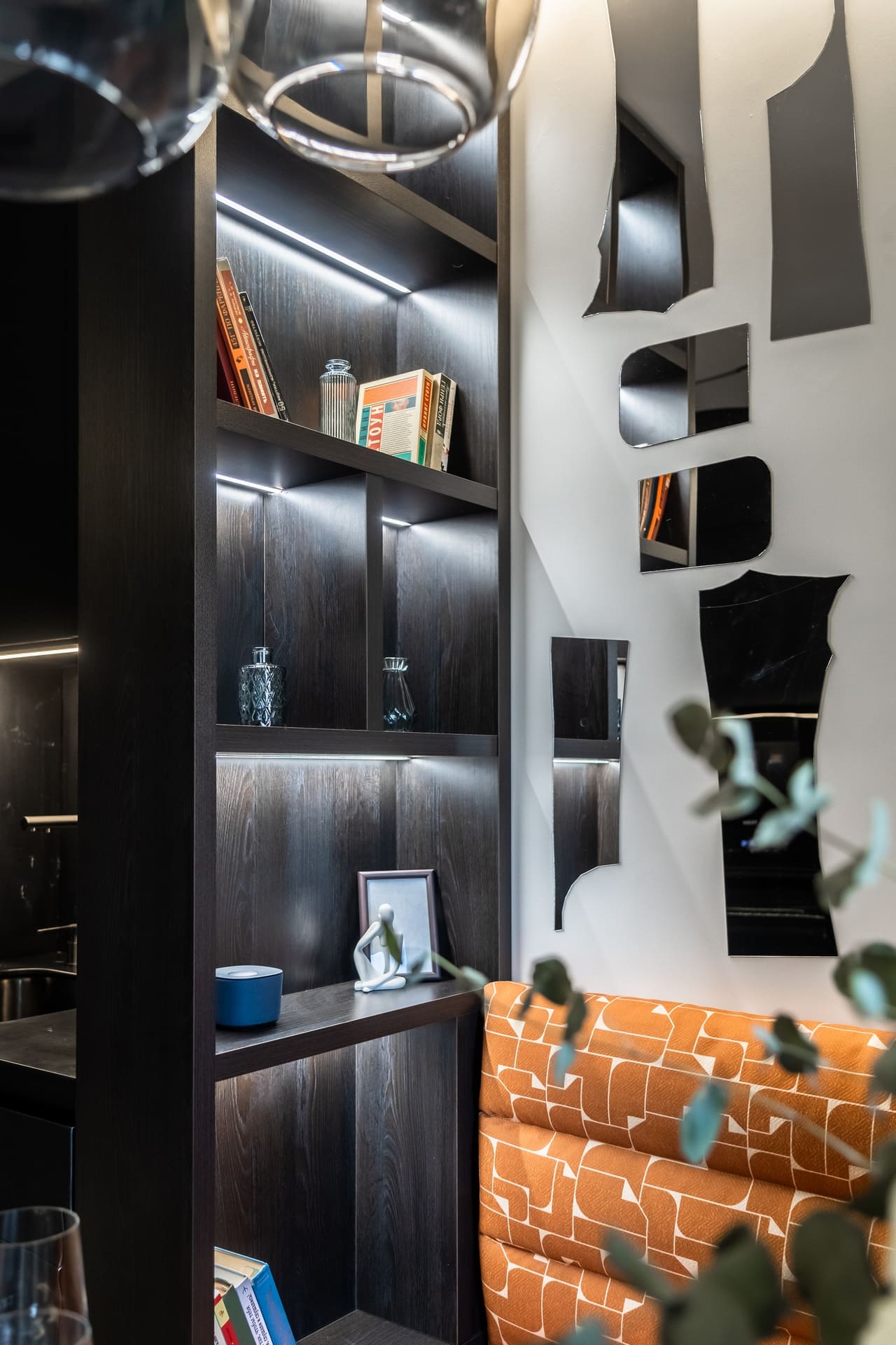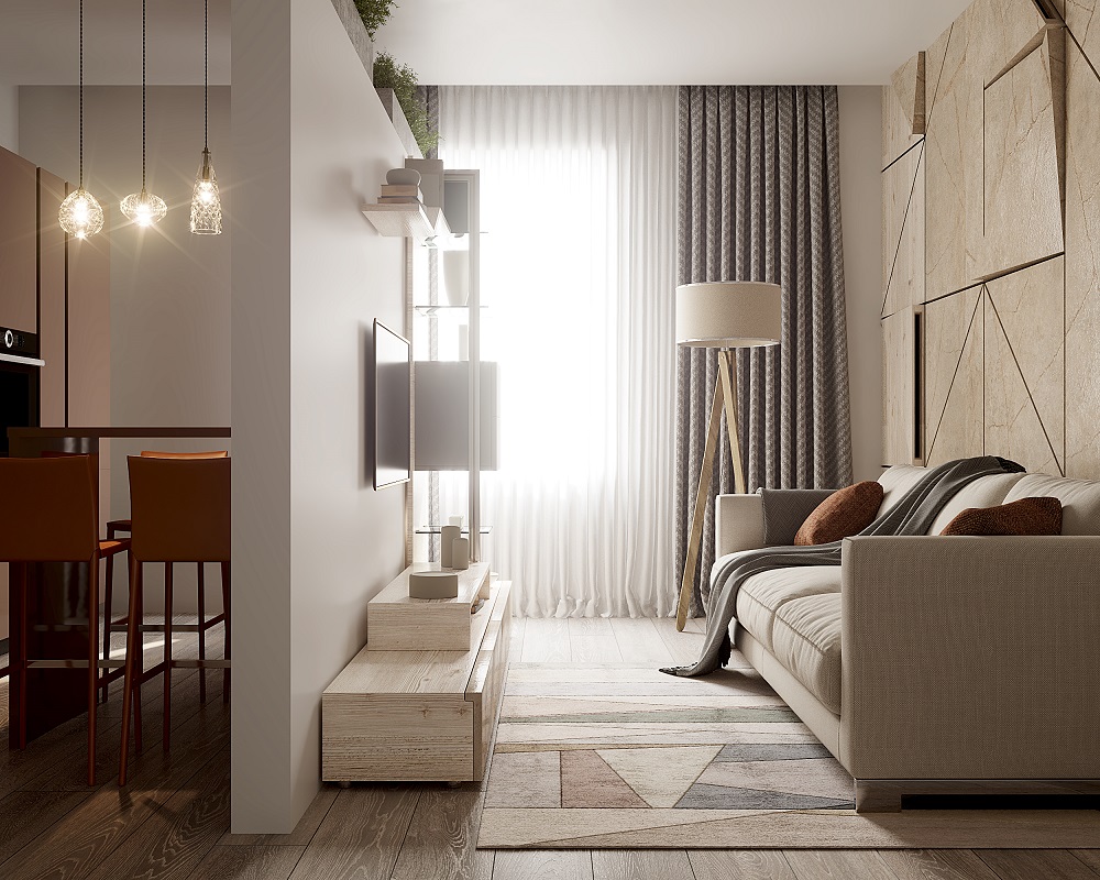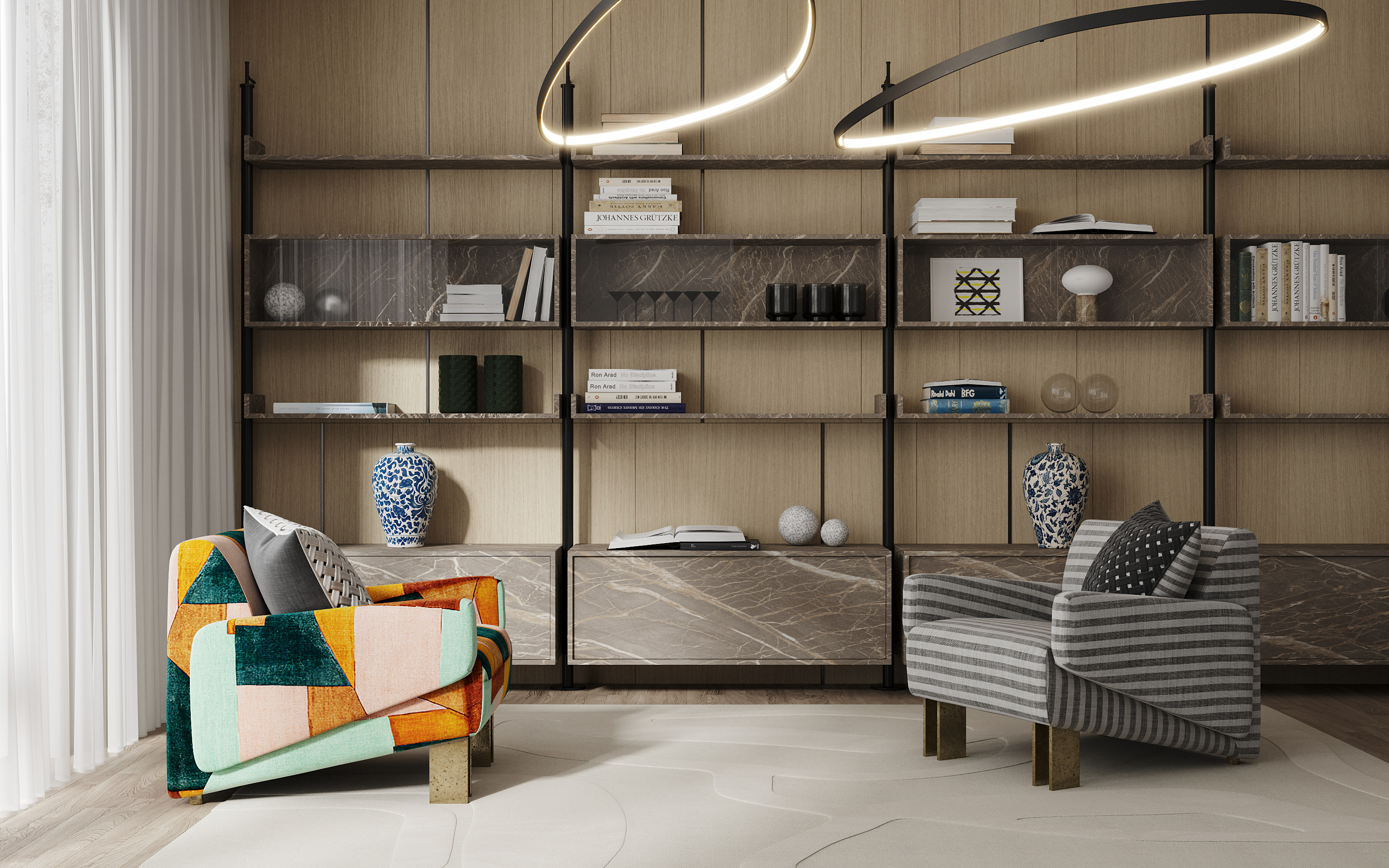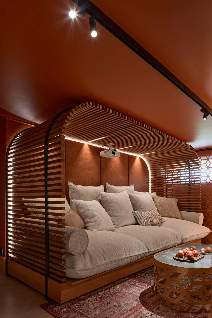 в освещении и окружении интерьера -