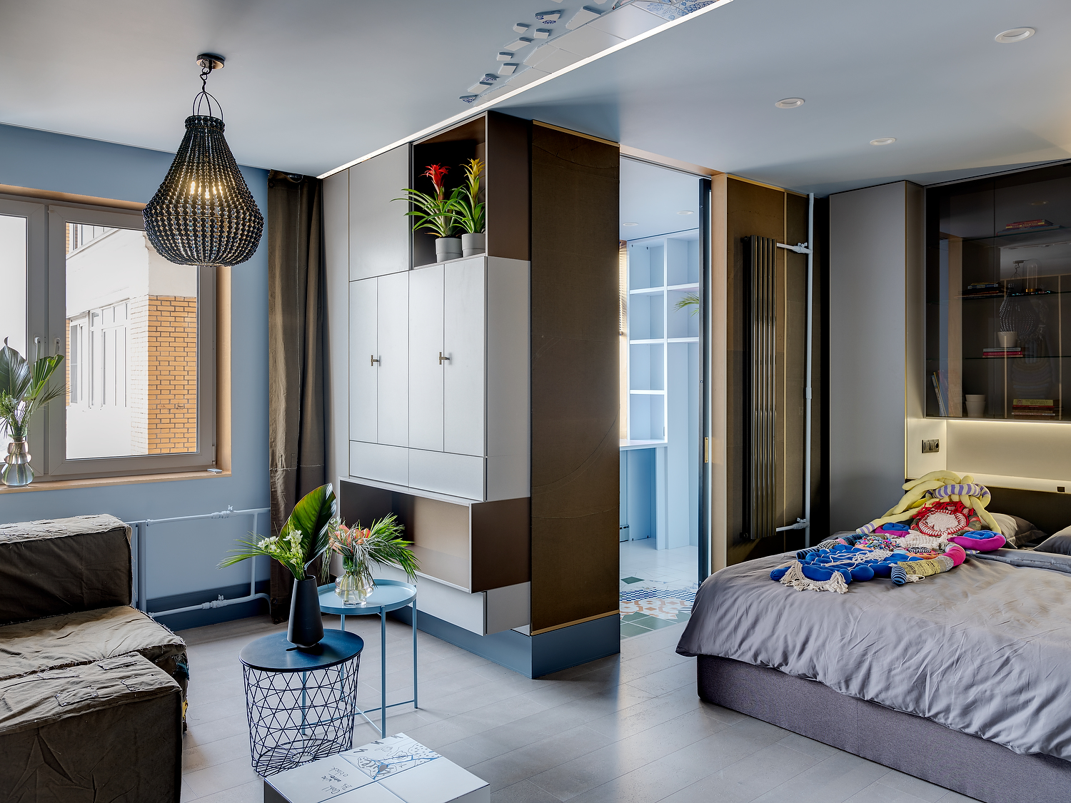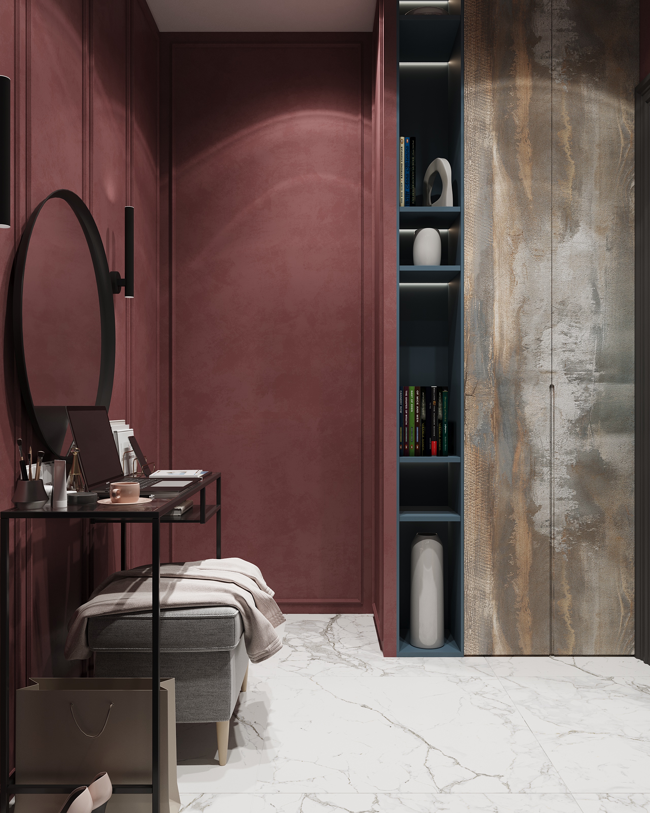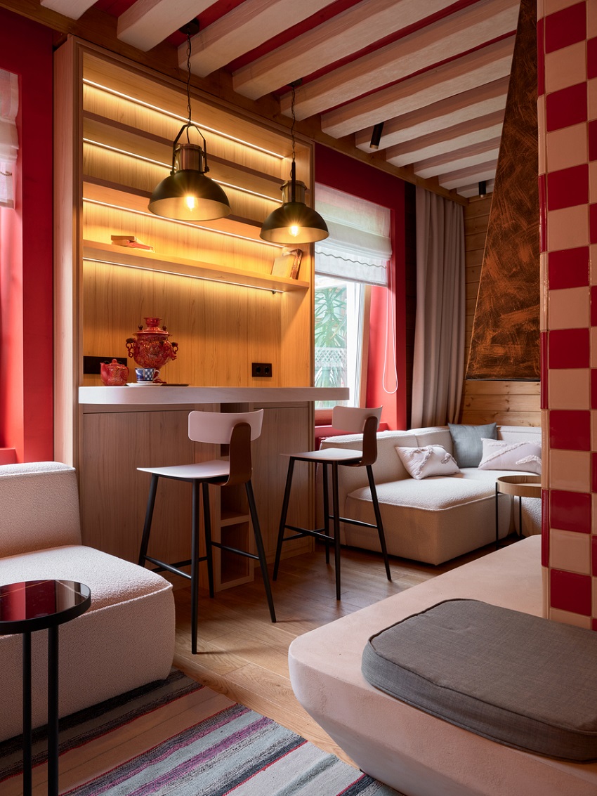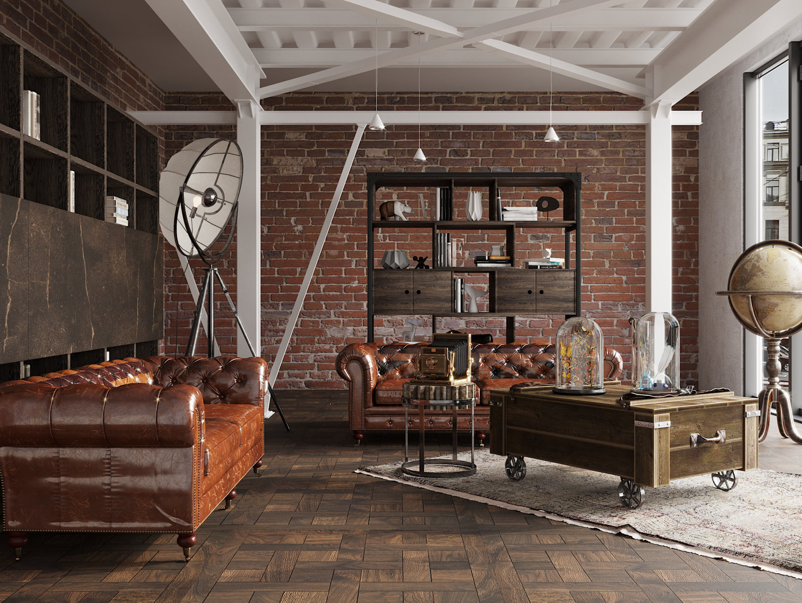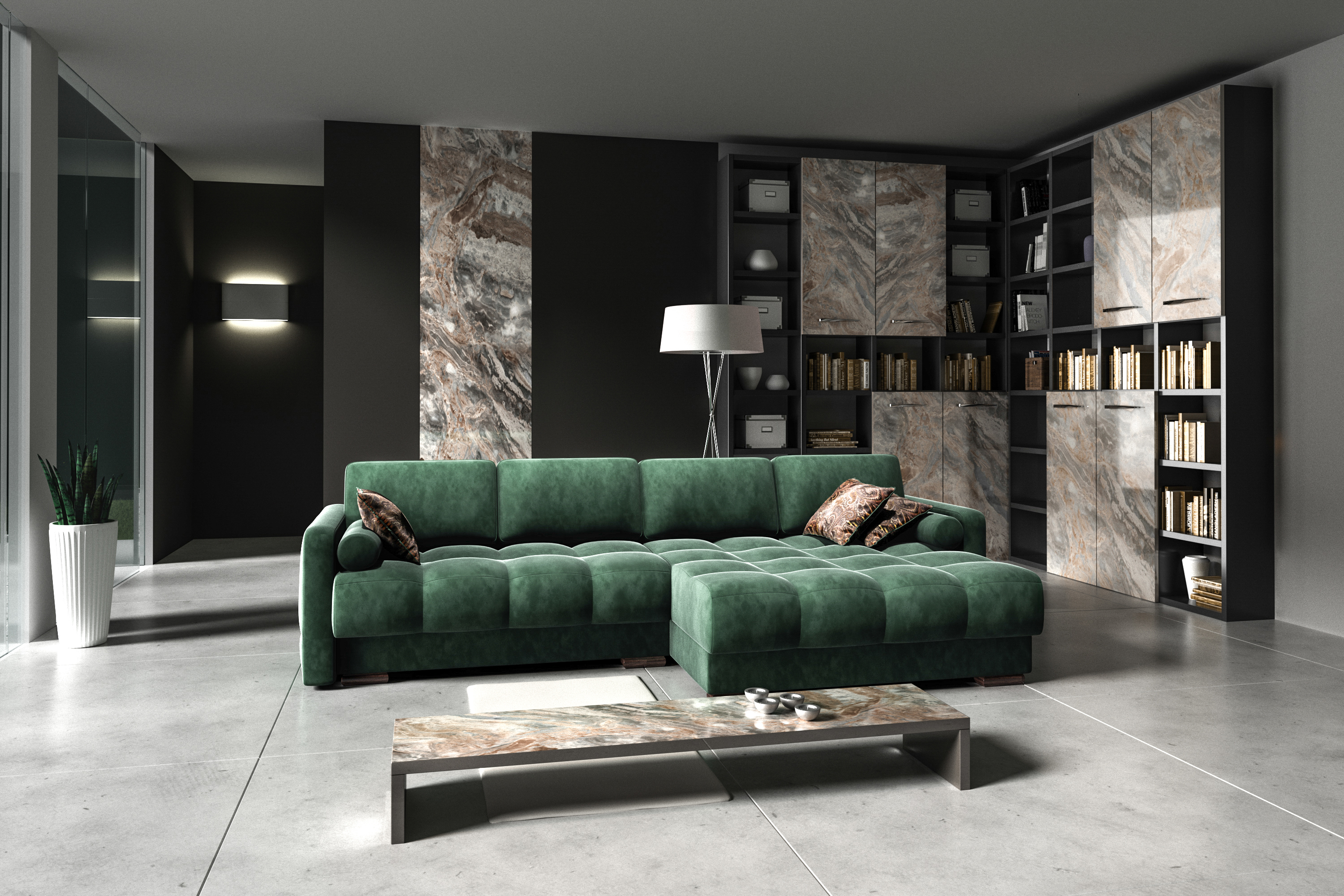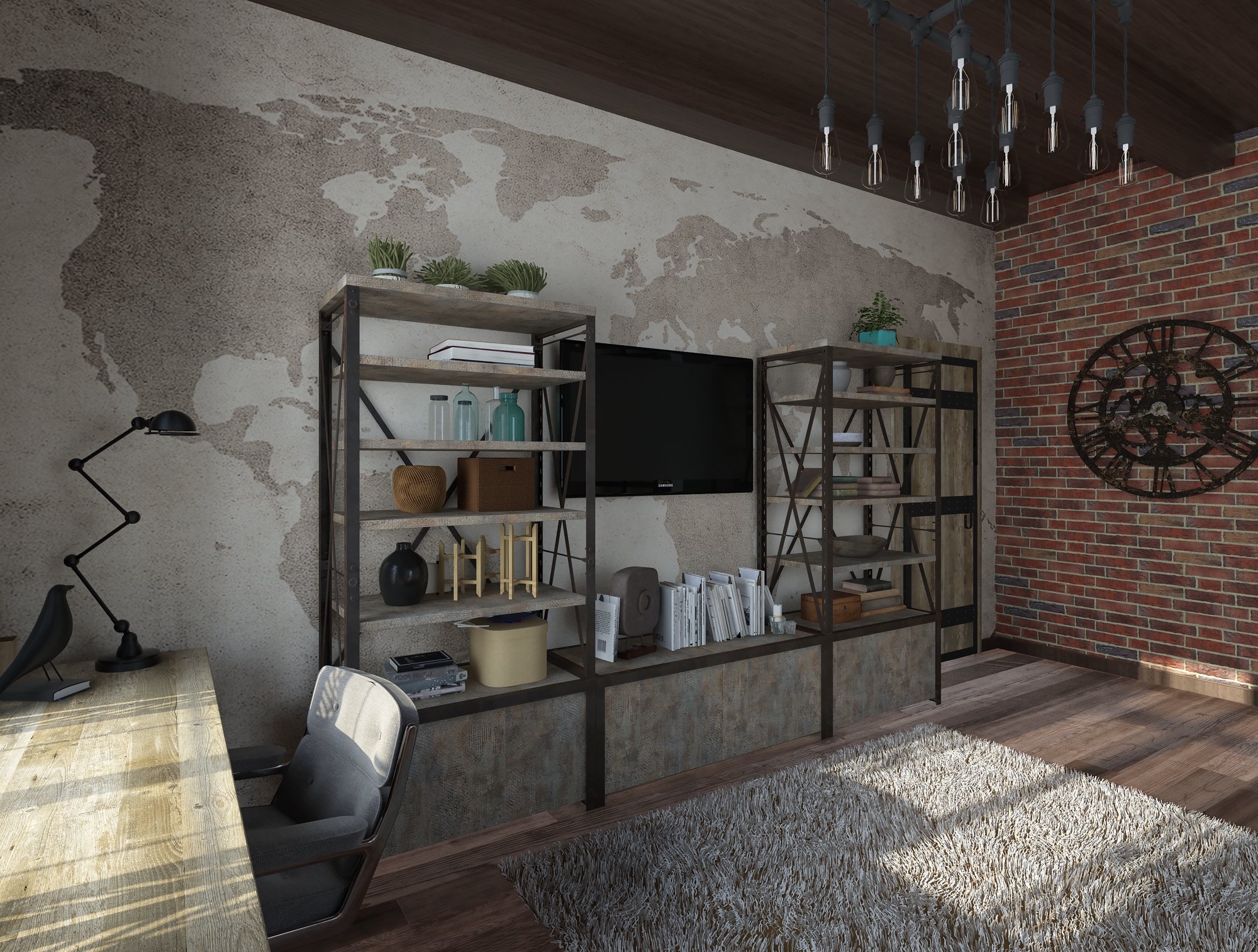 в освещении и окружении интерьера -