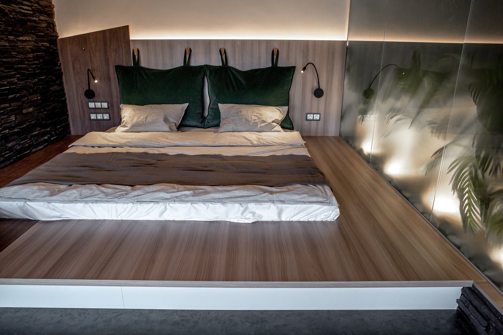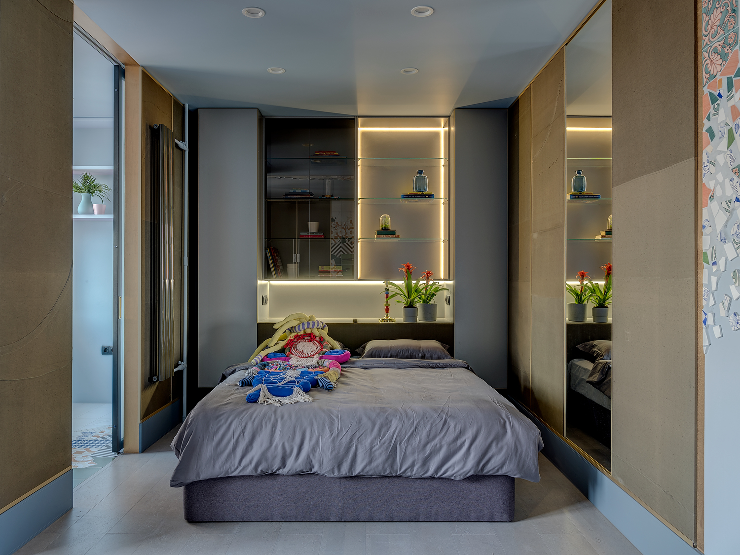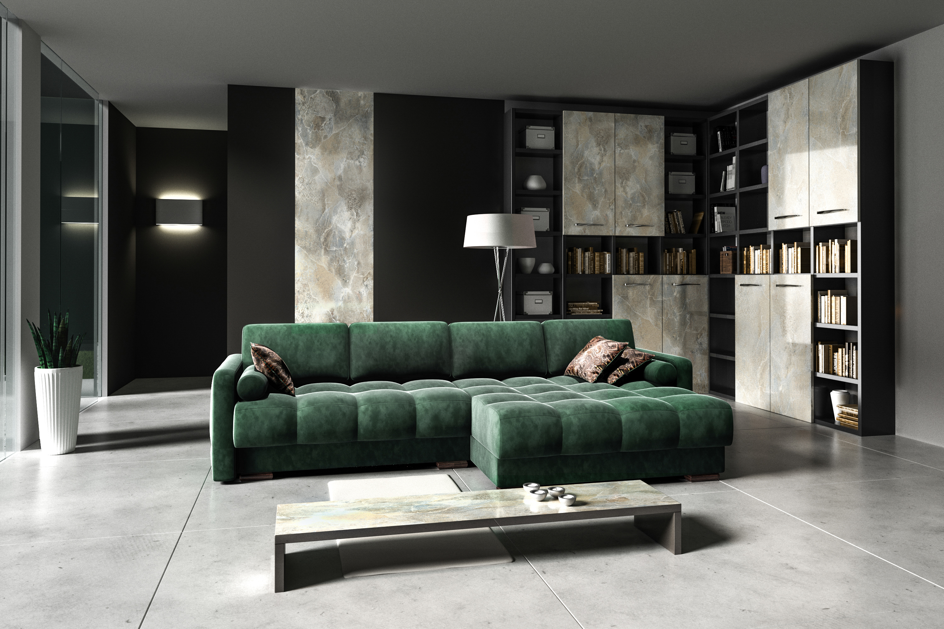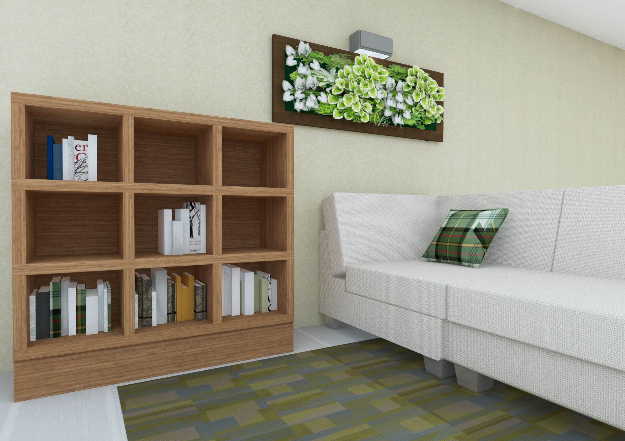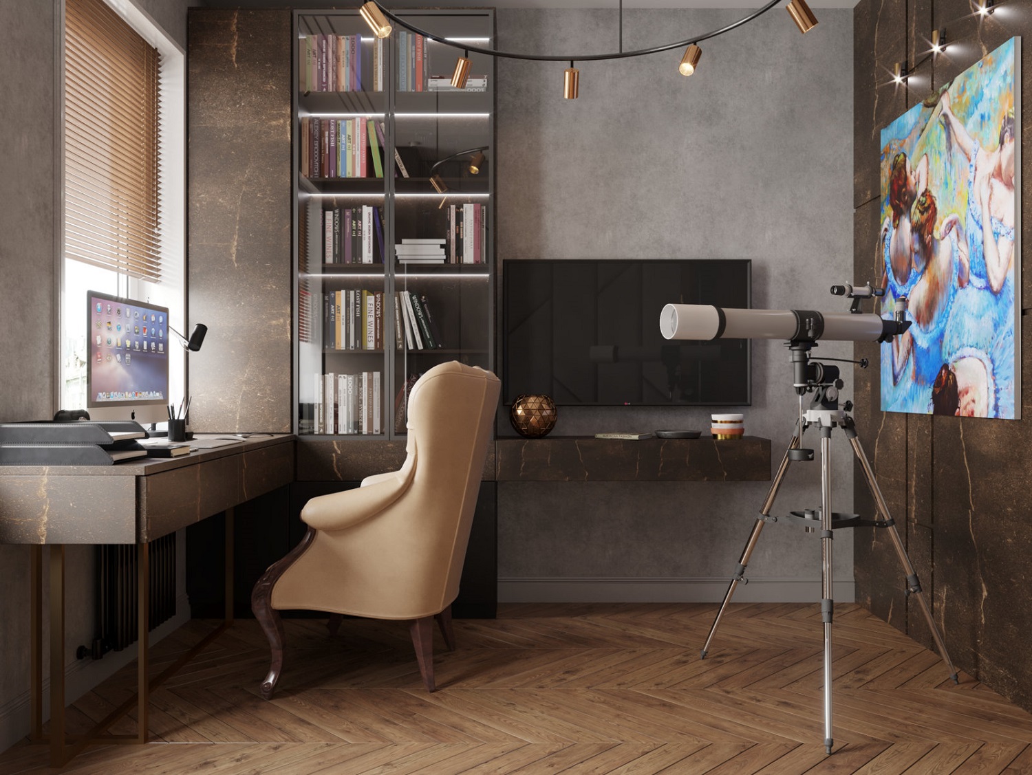 в освещении и окружении интерьера -