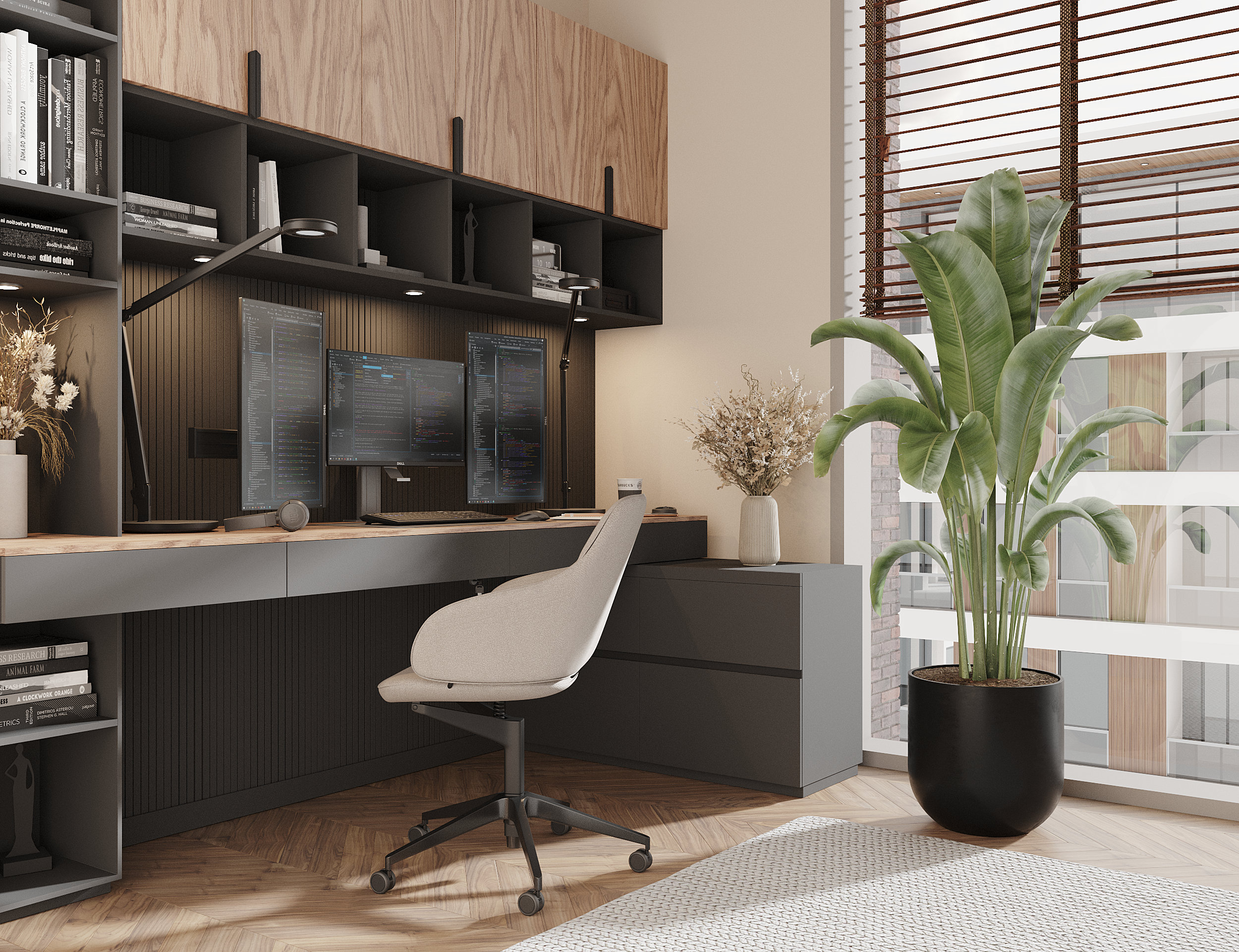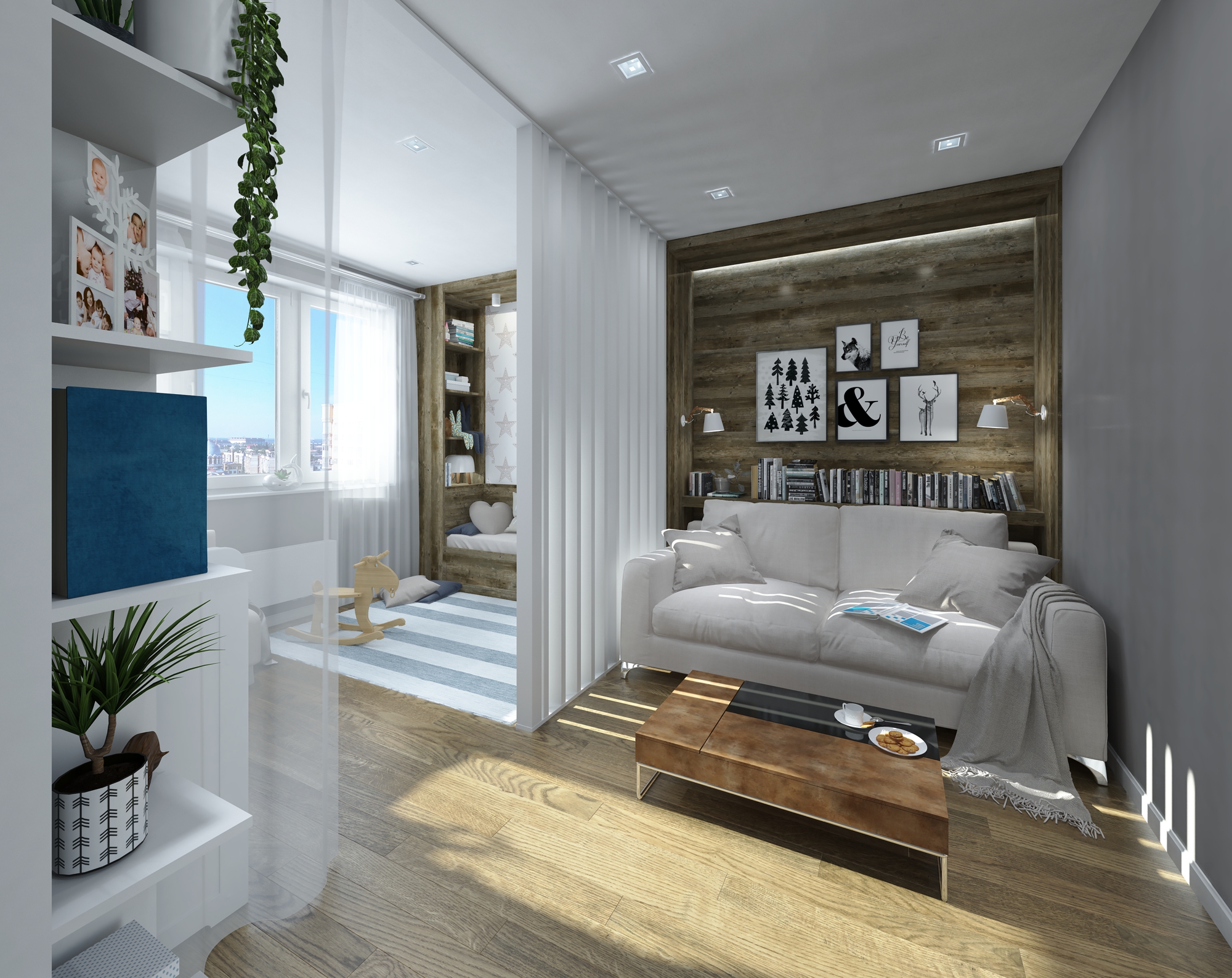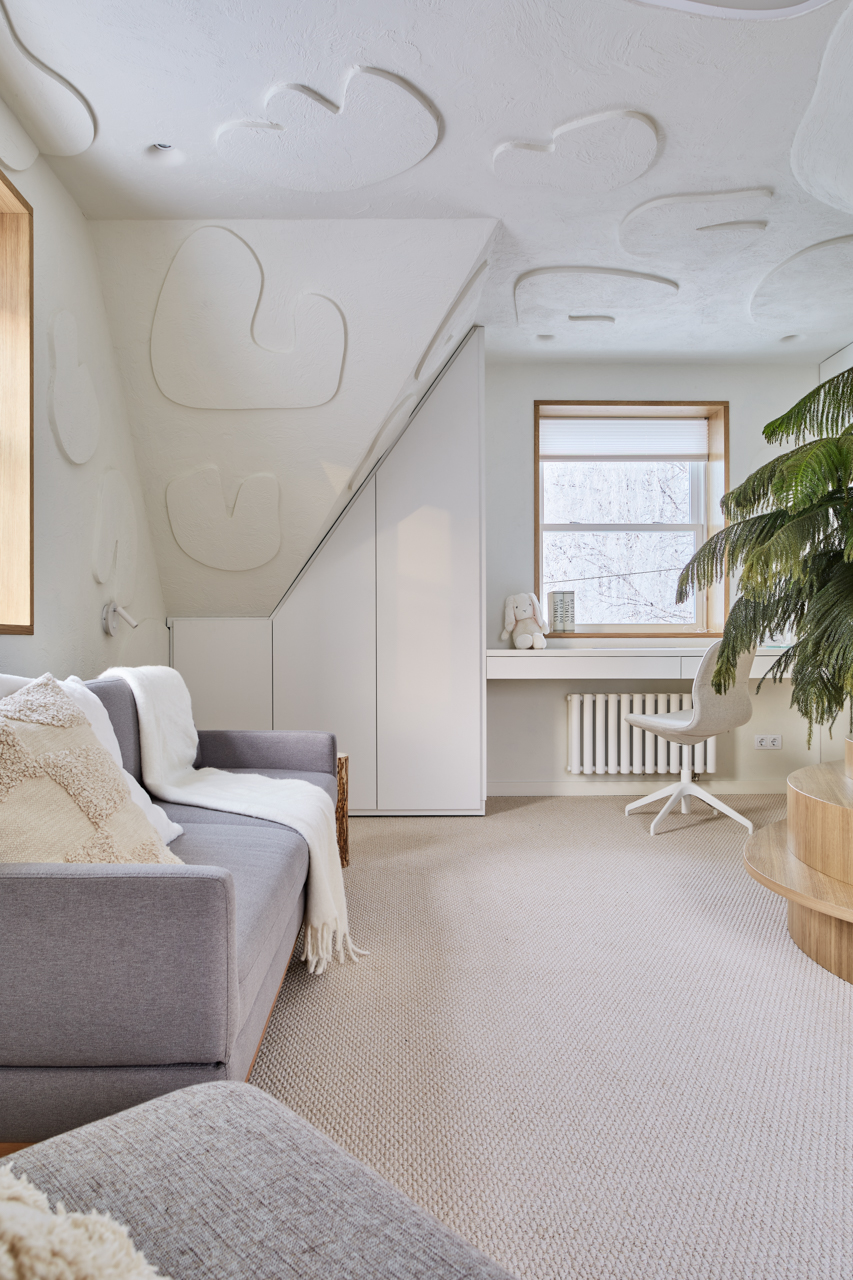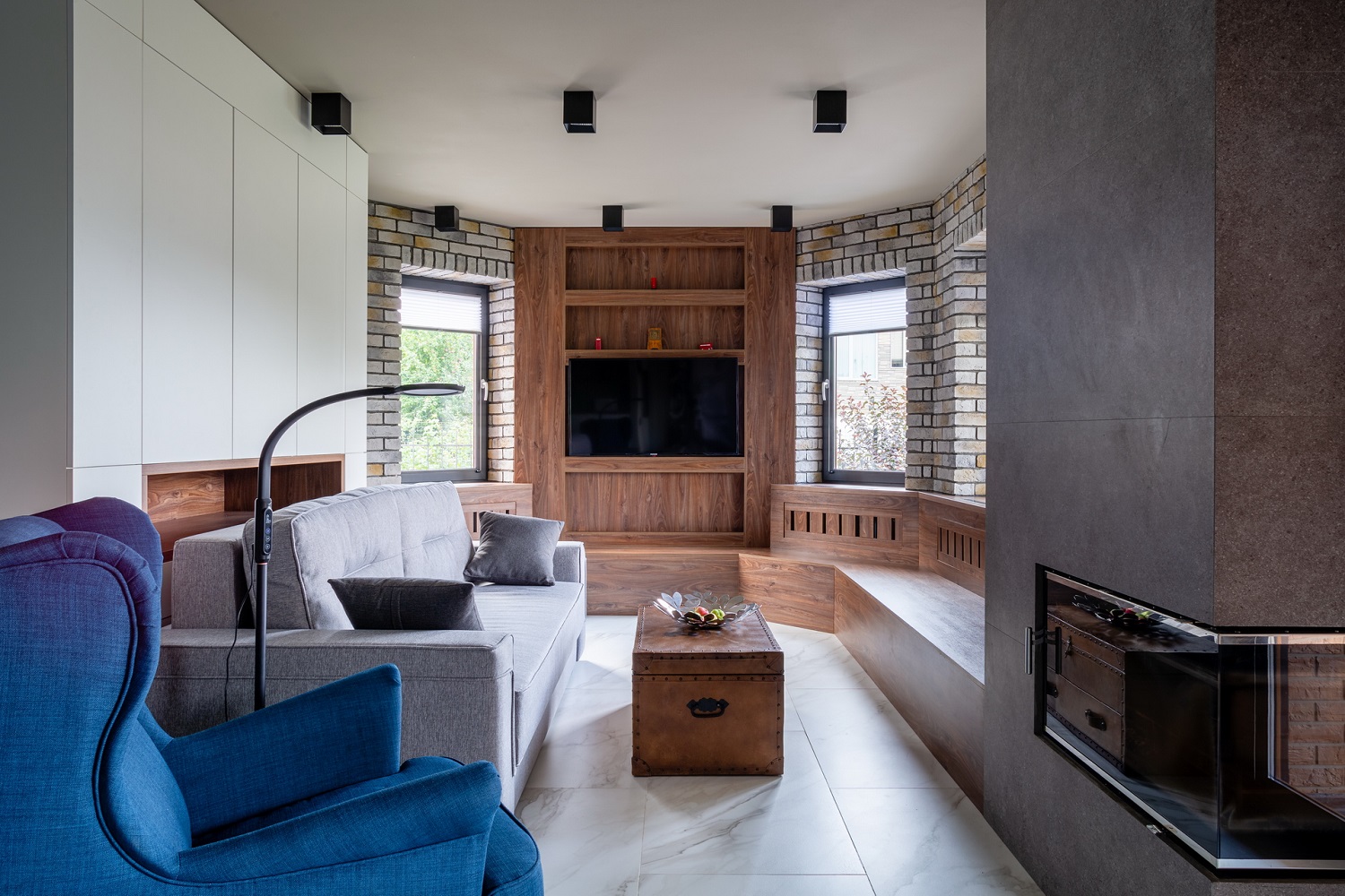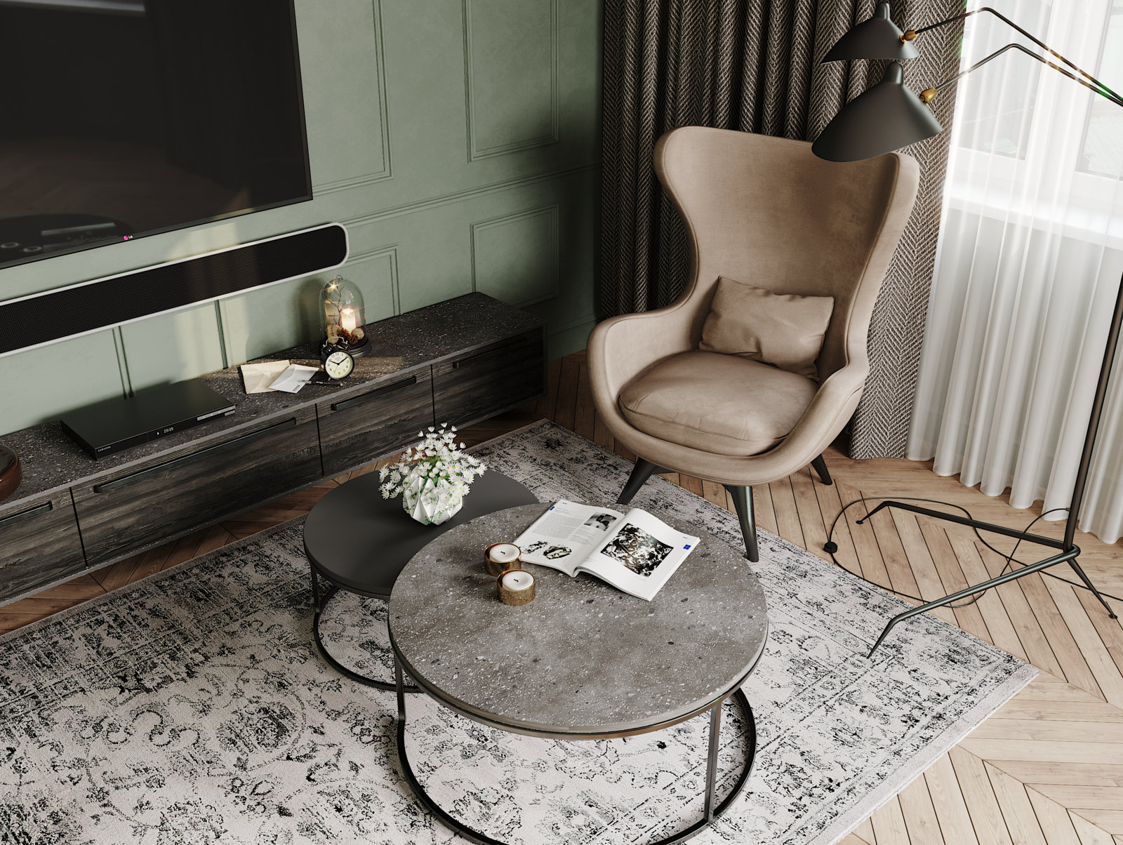 в освещении и окружении интерьера -