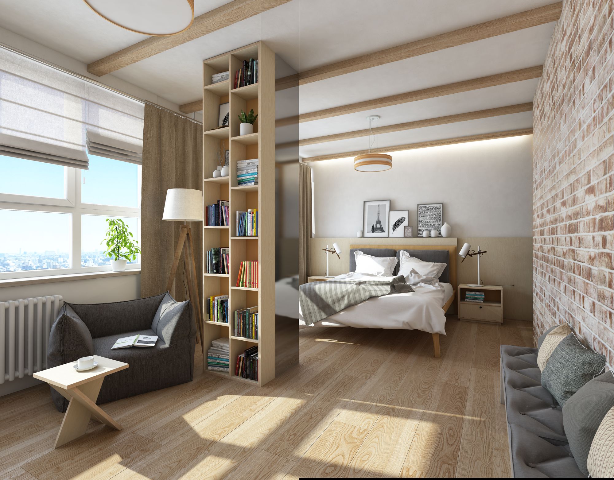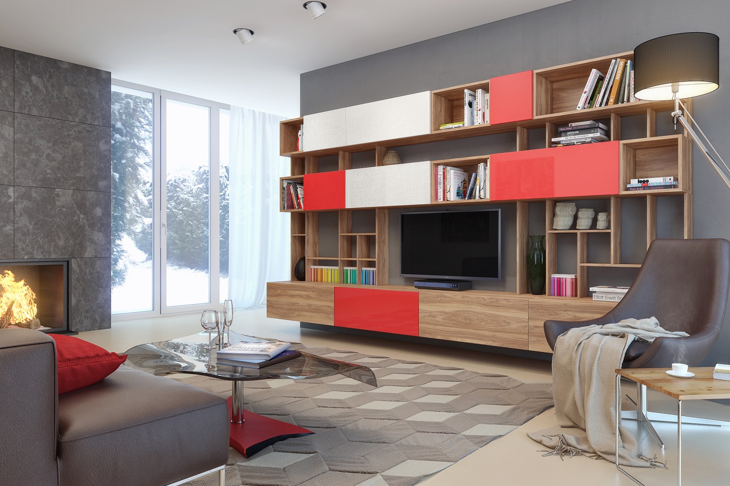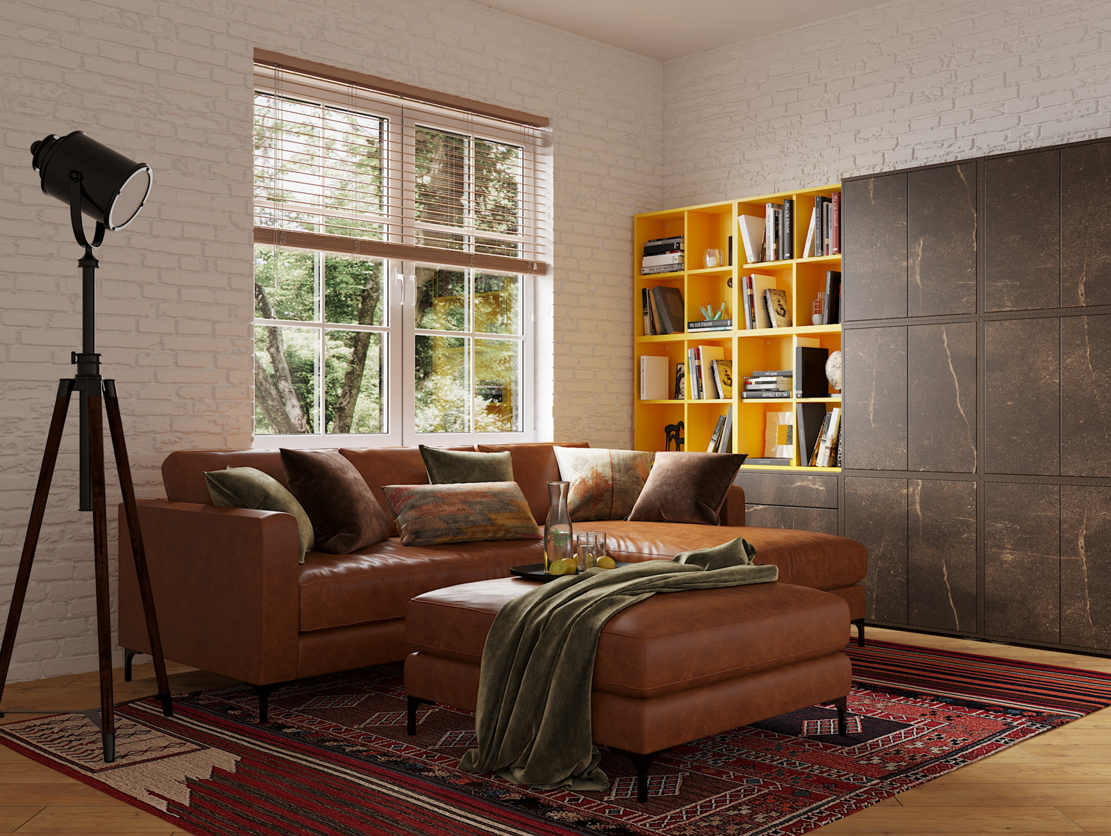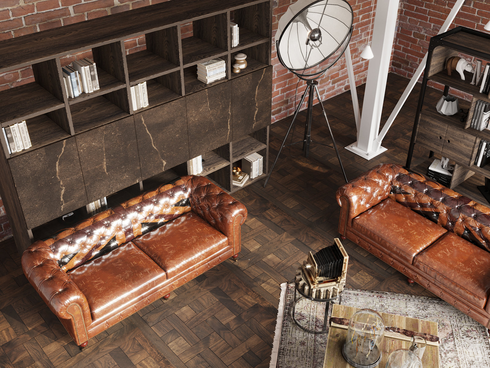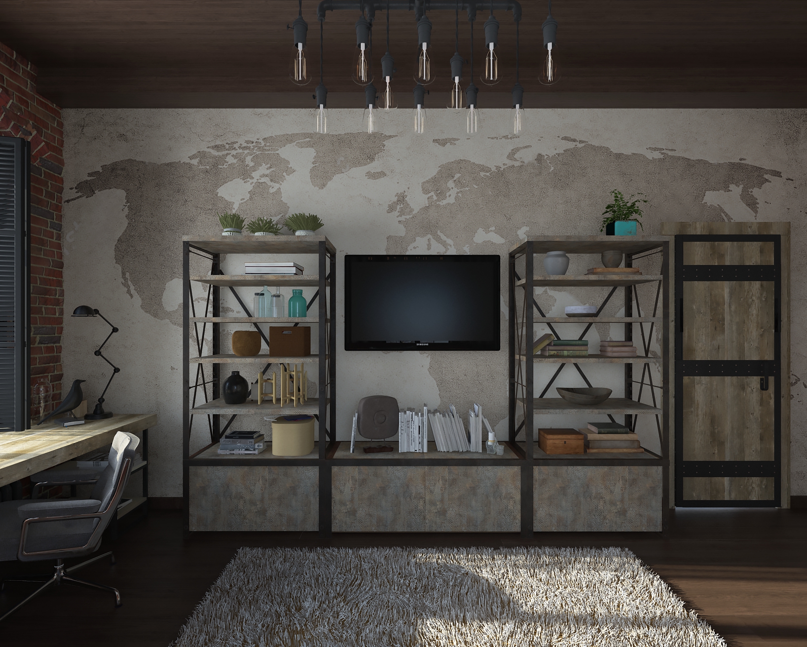 в освещении и окружении интерьера -