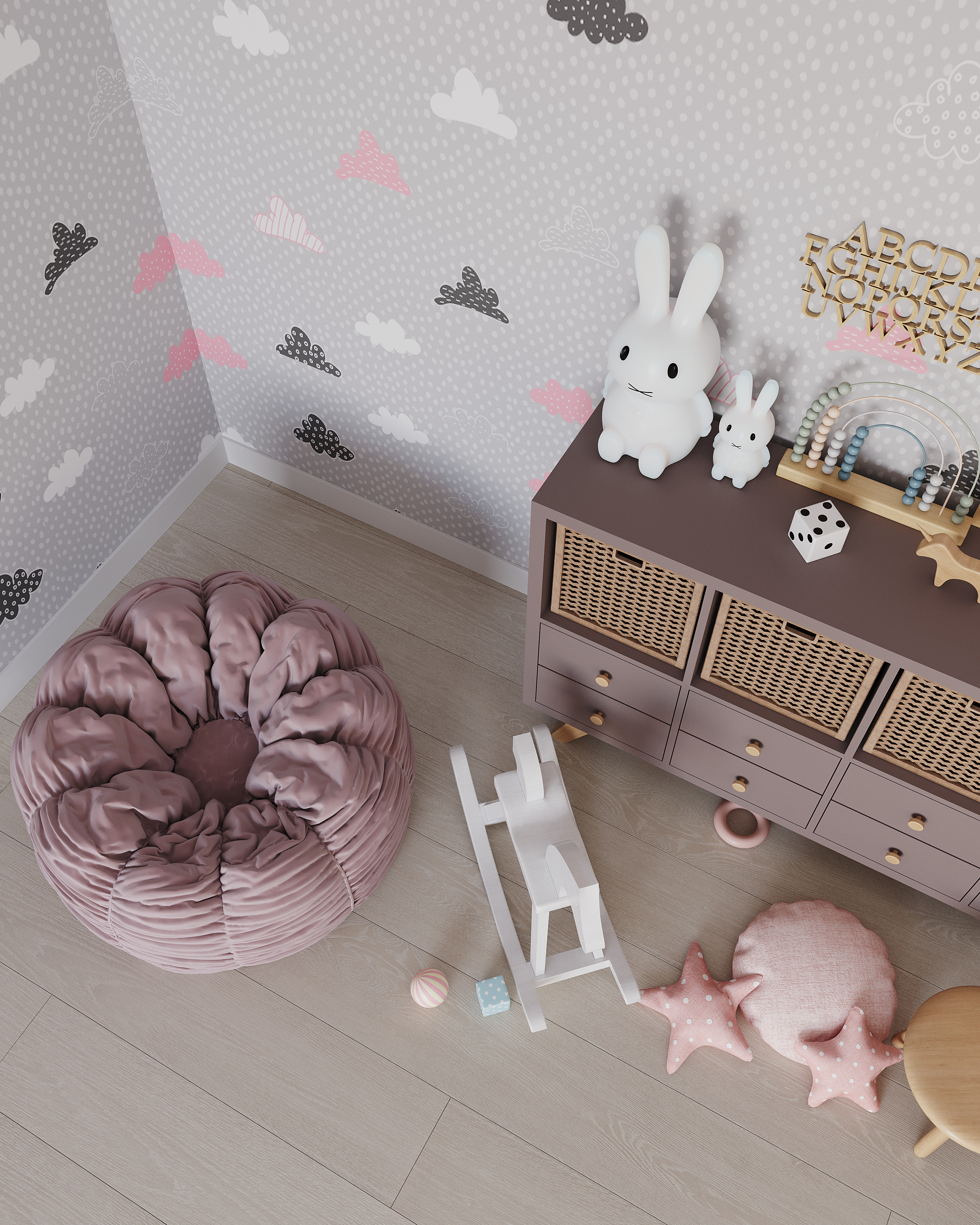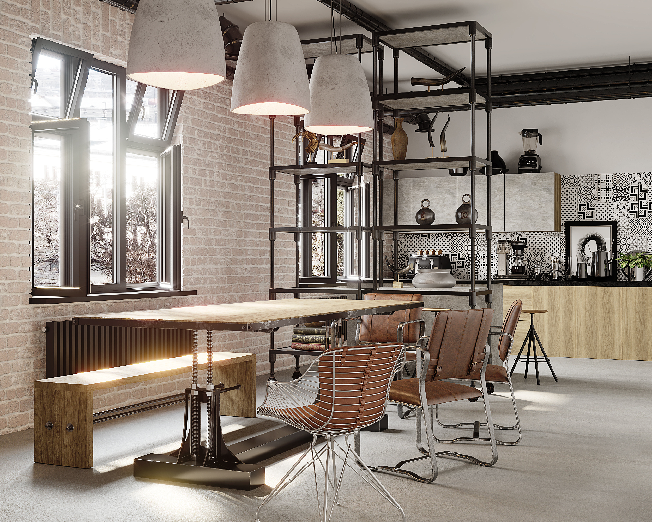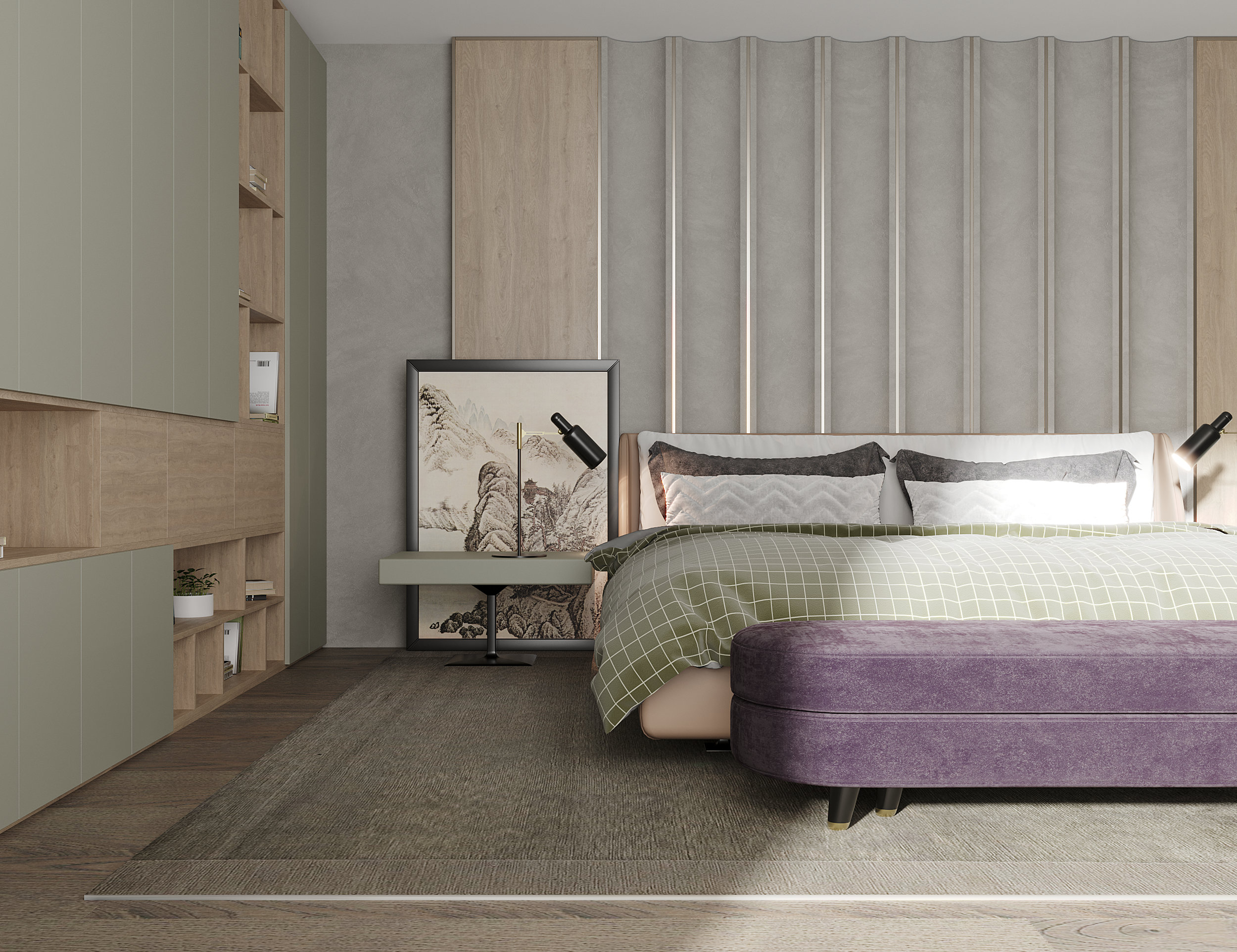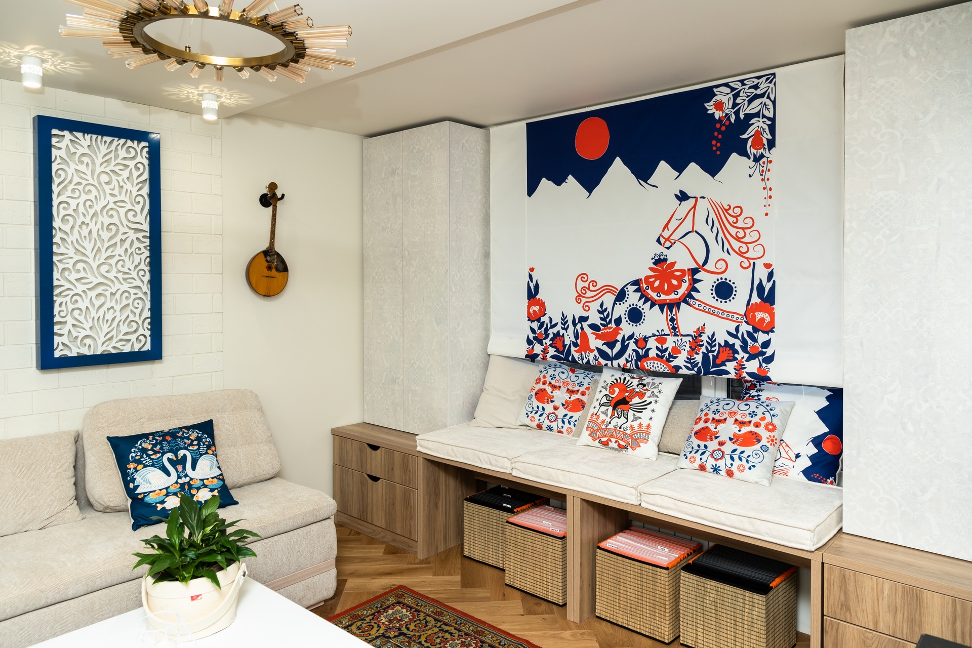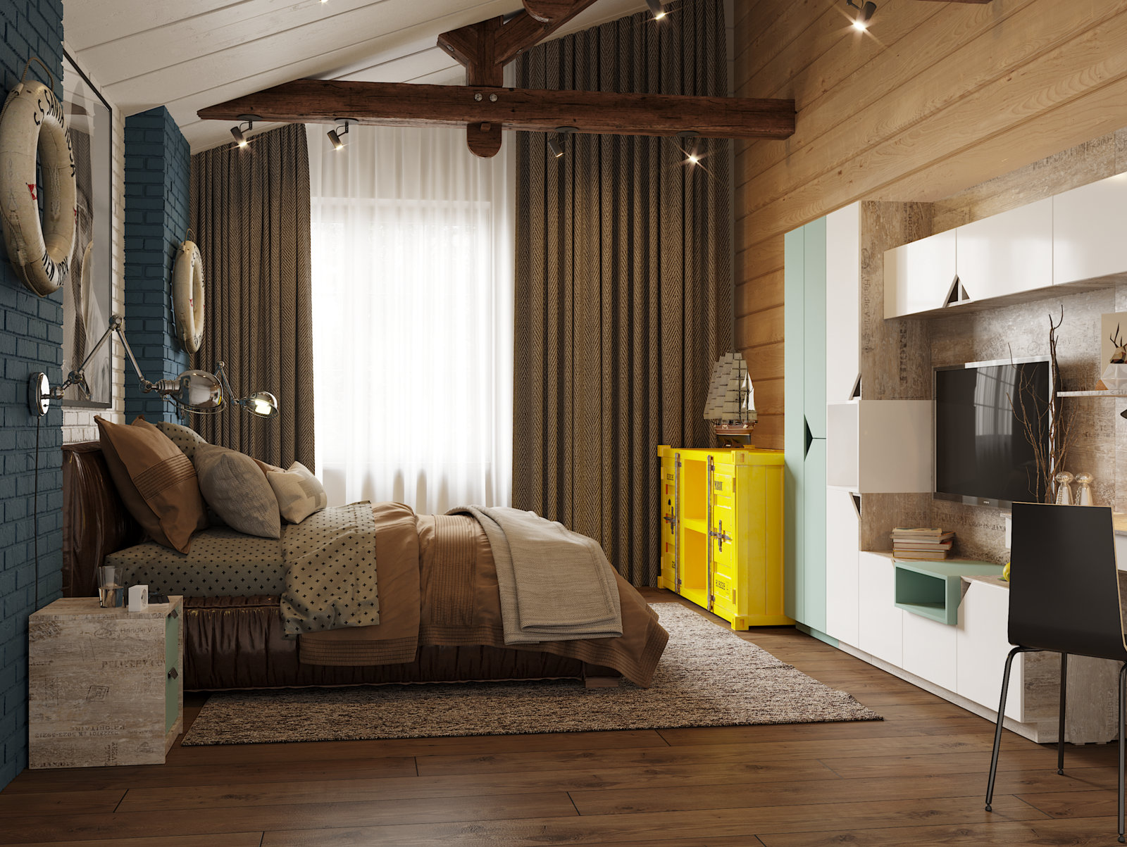 в освещении и окружении интерьера -