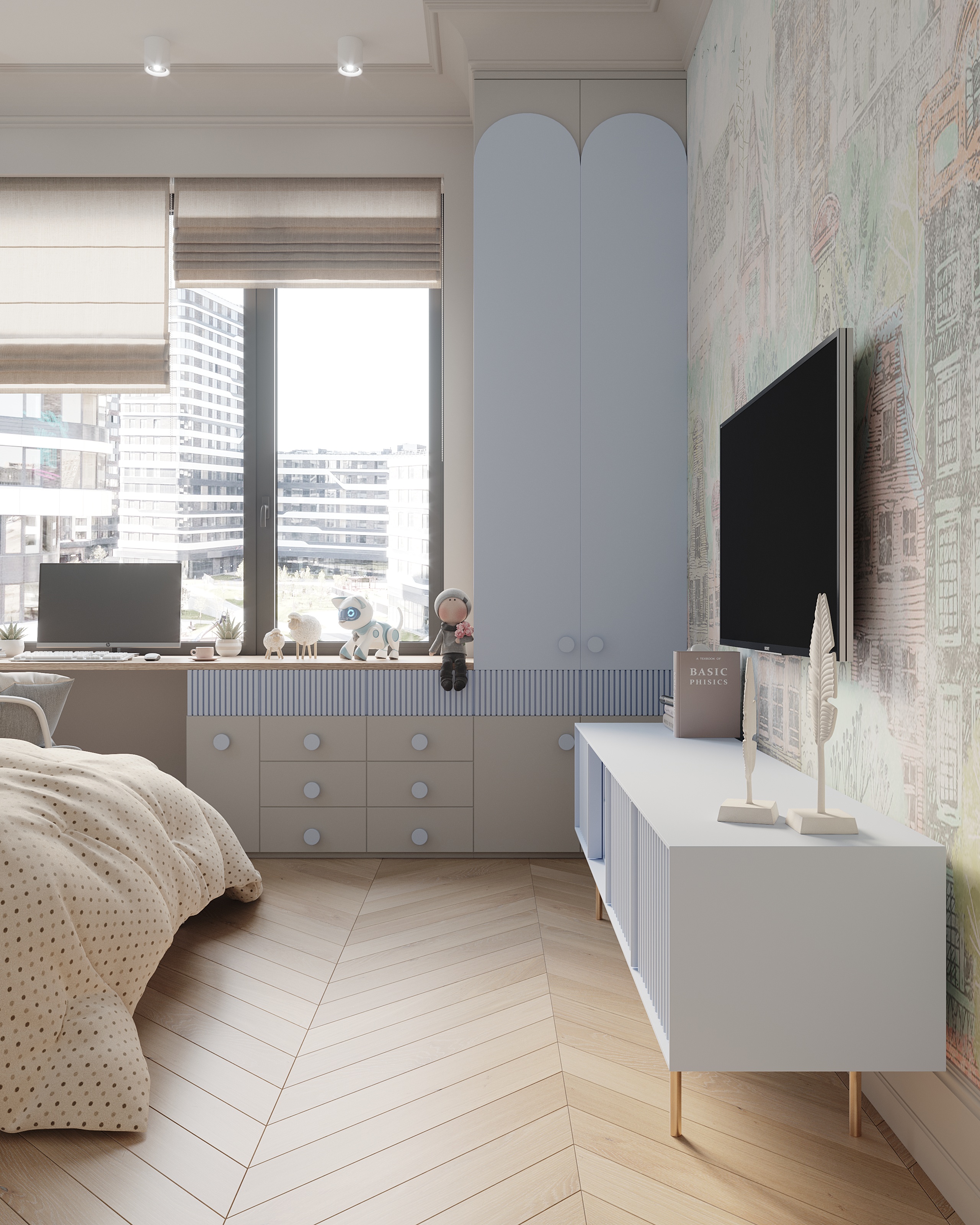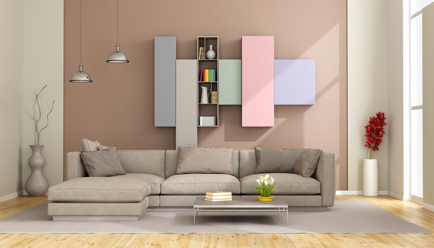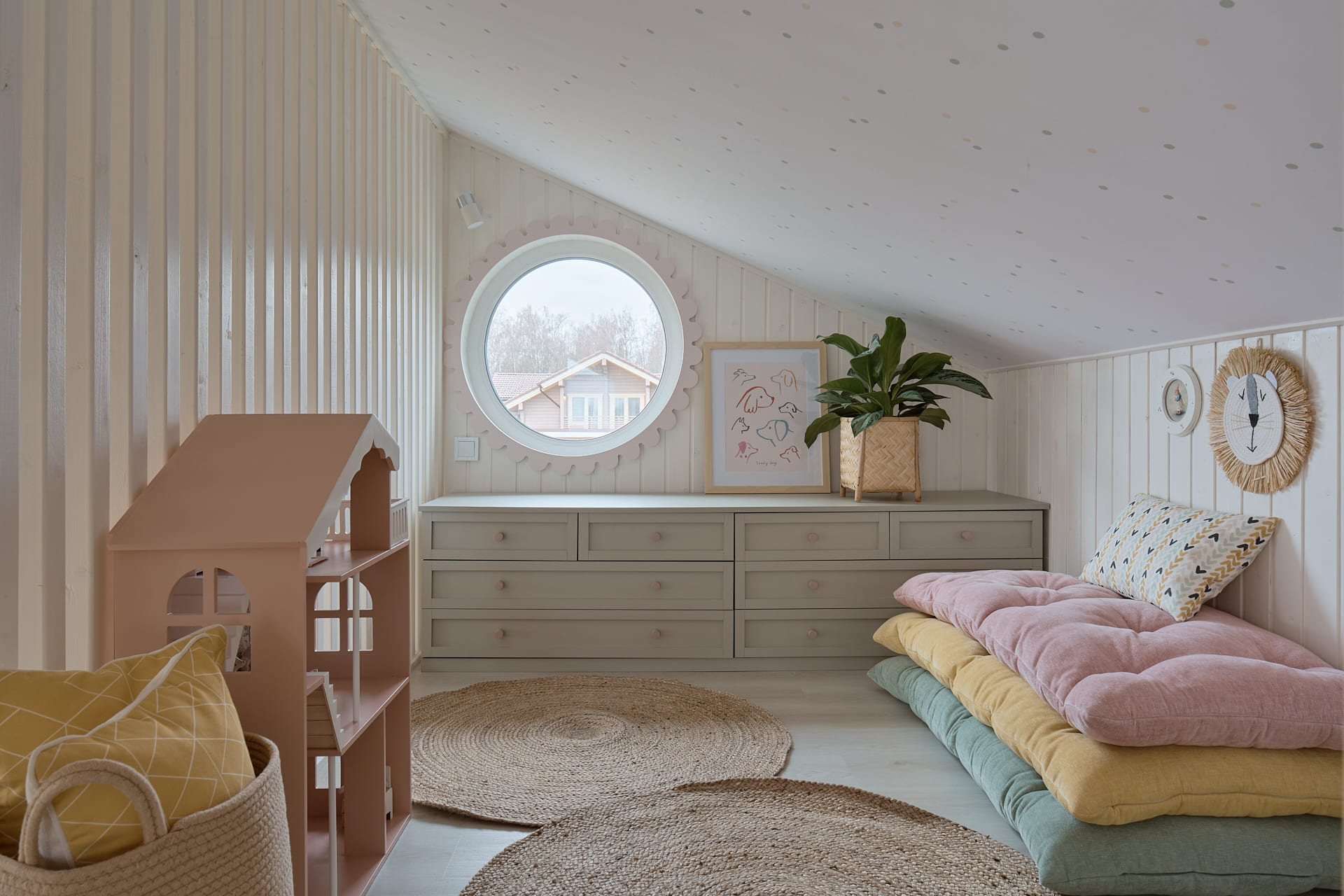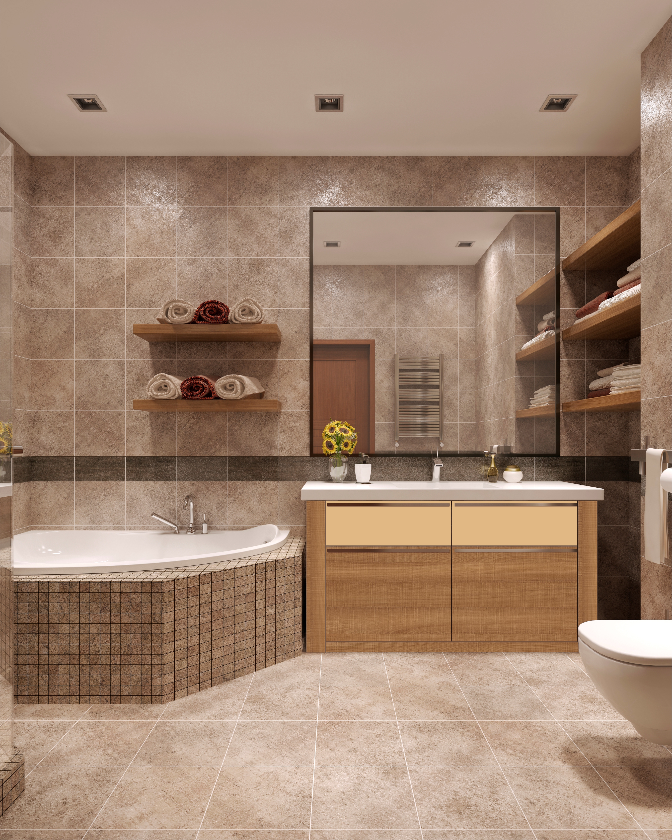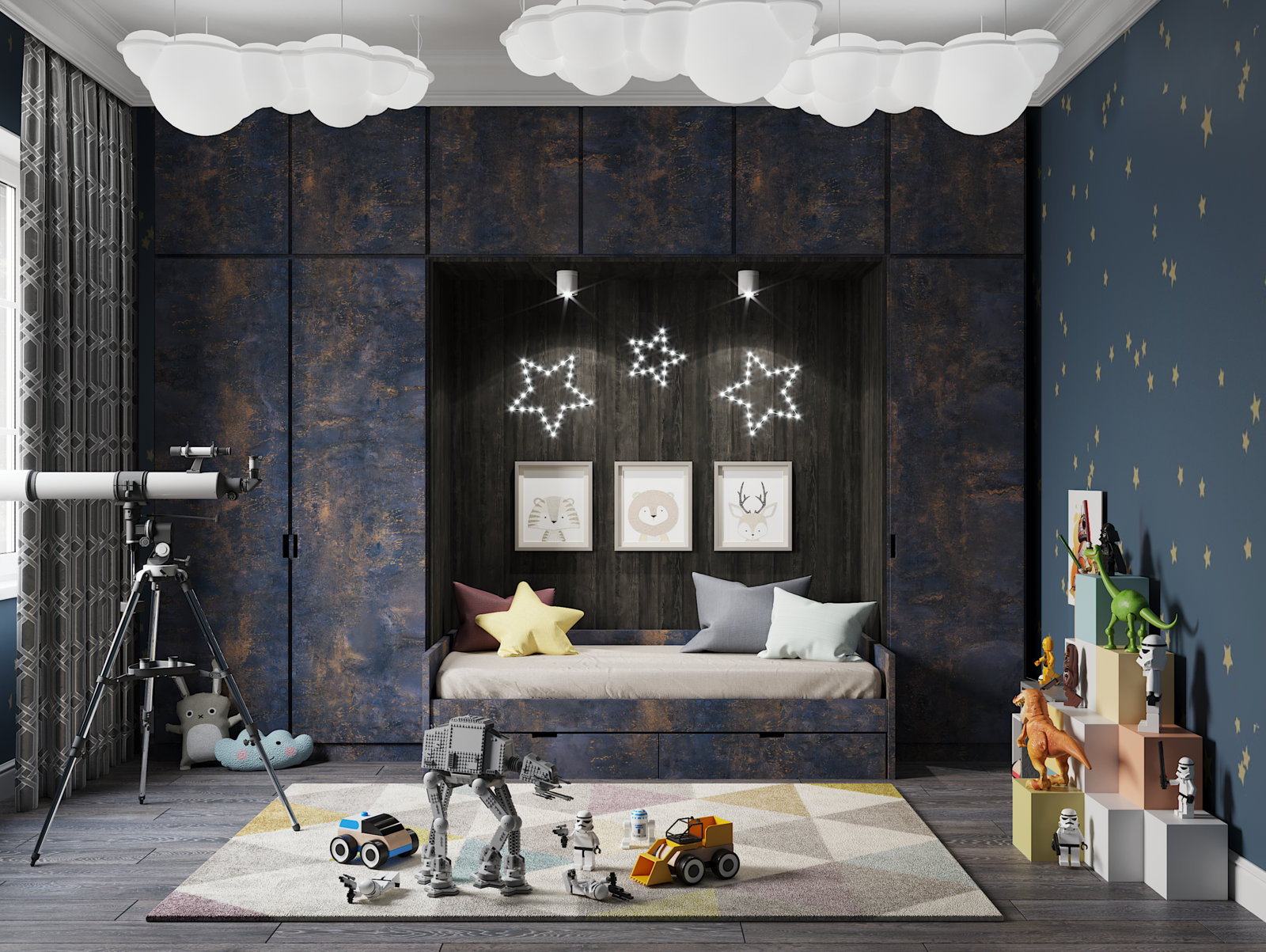 в освещении и окружении интерьера -