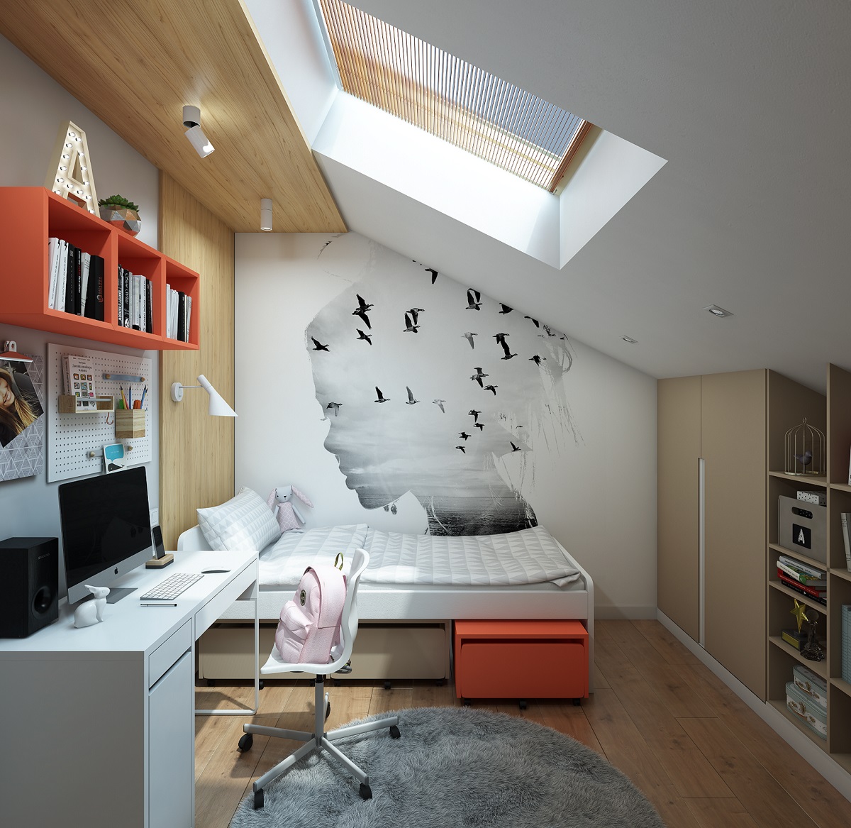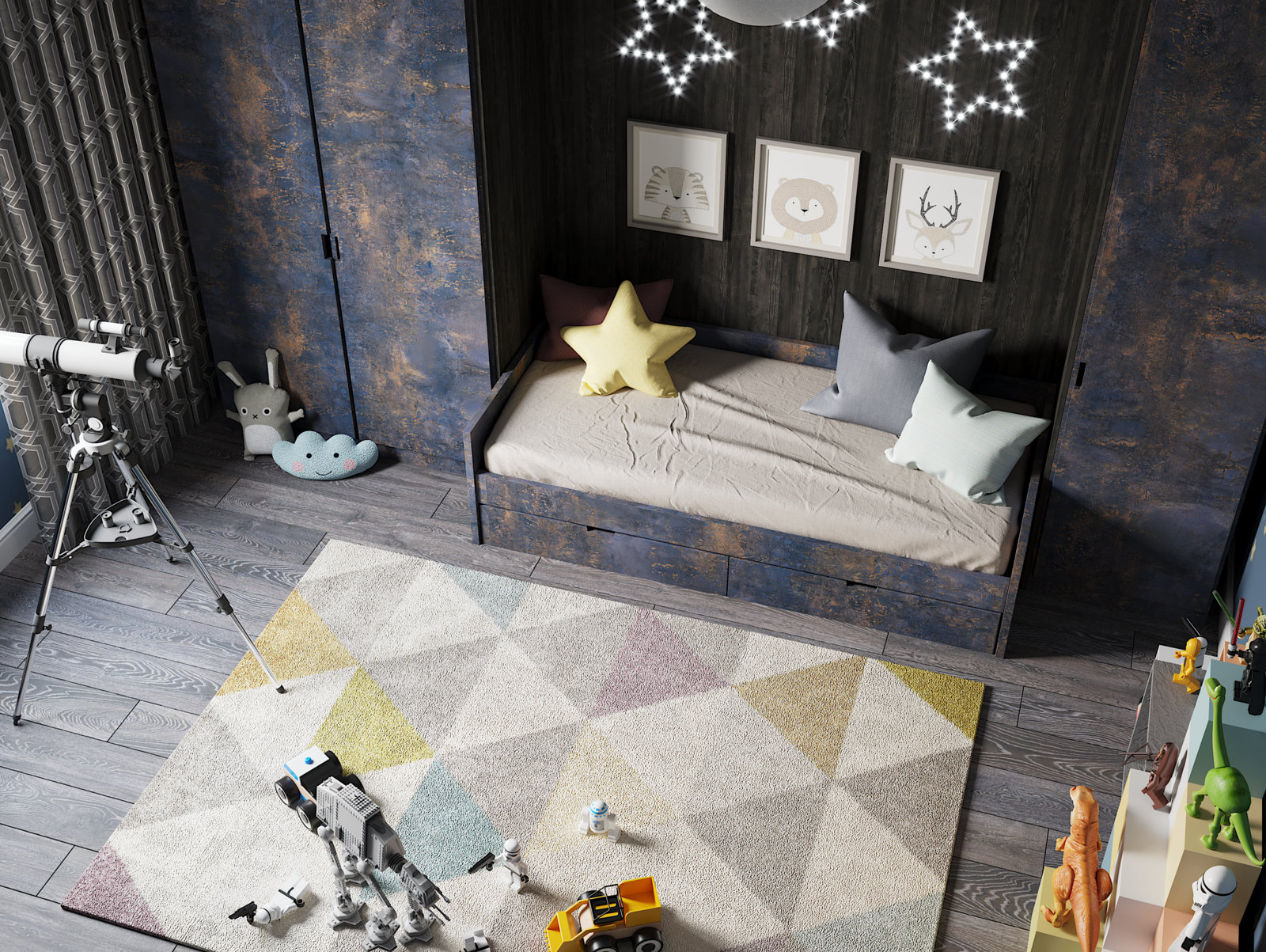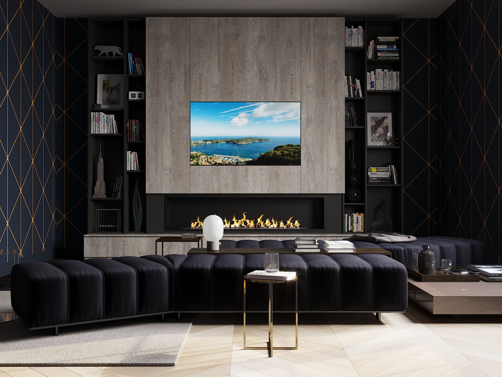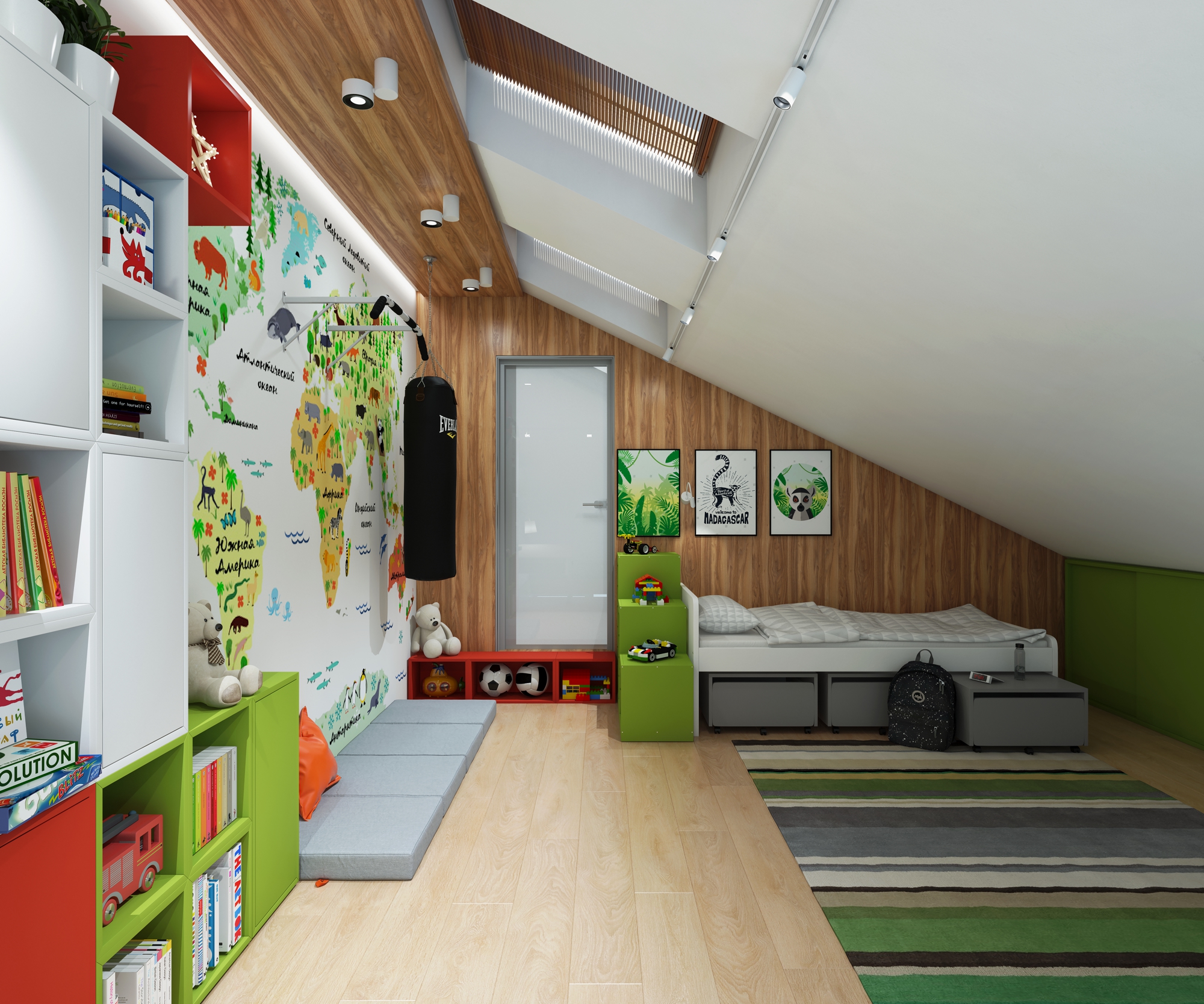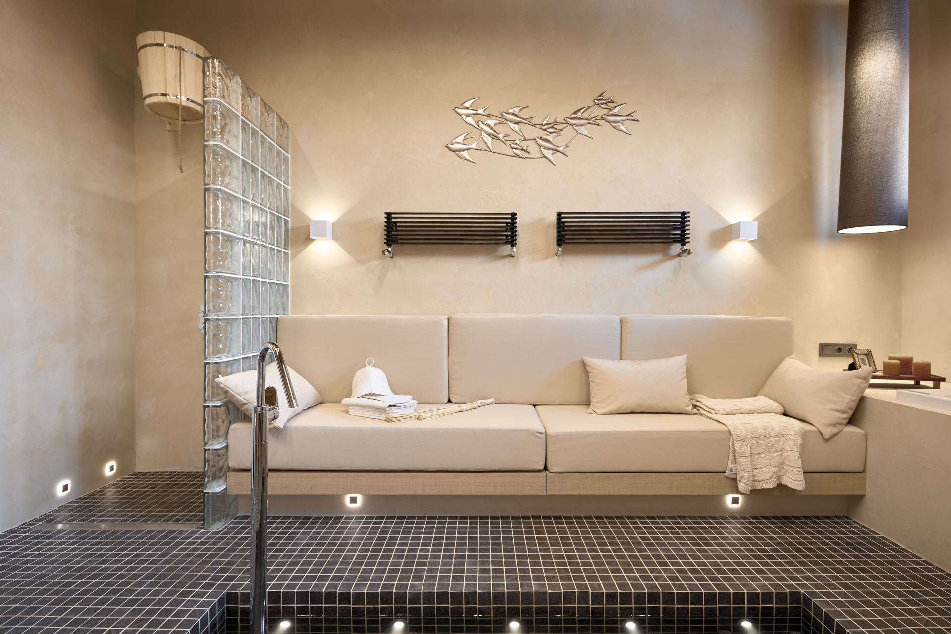 в освещении и окружении интерьера -