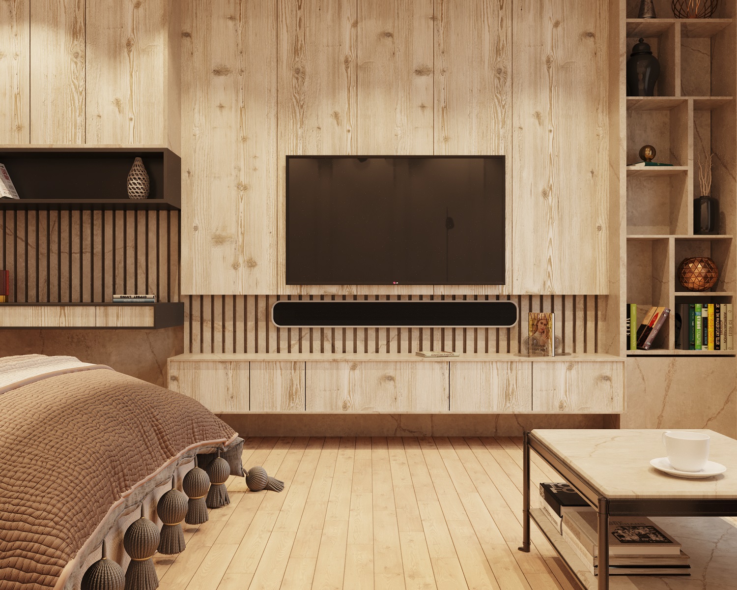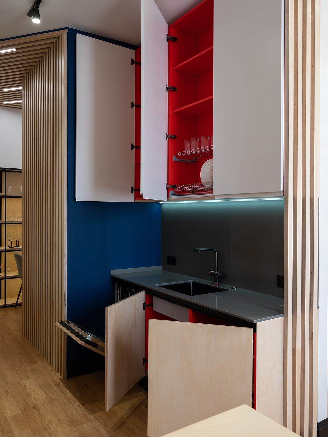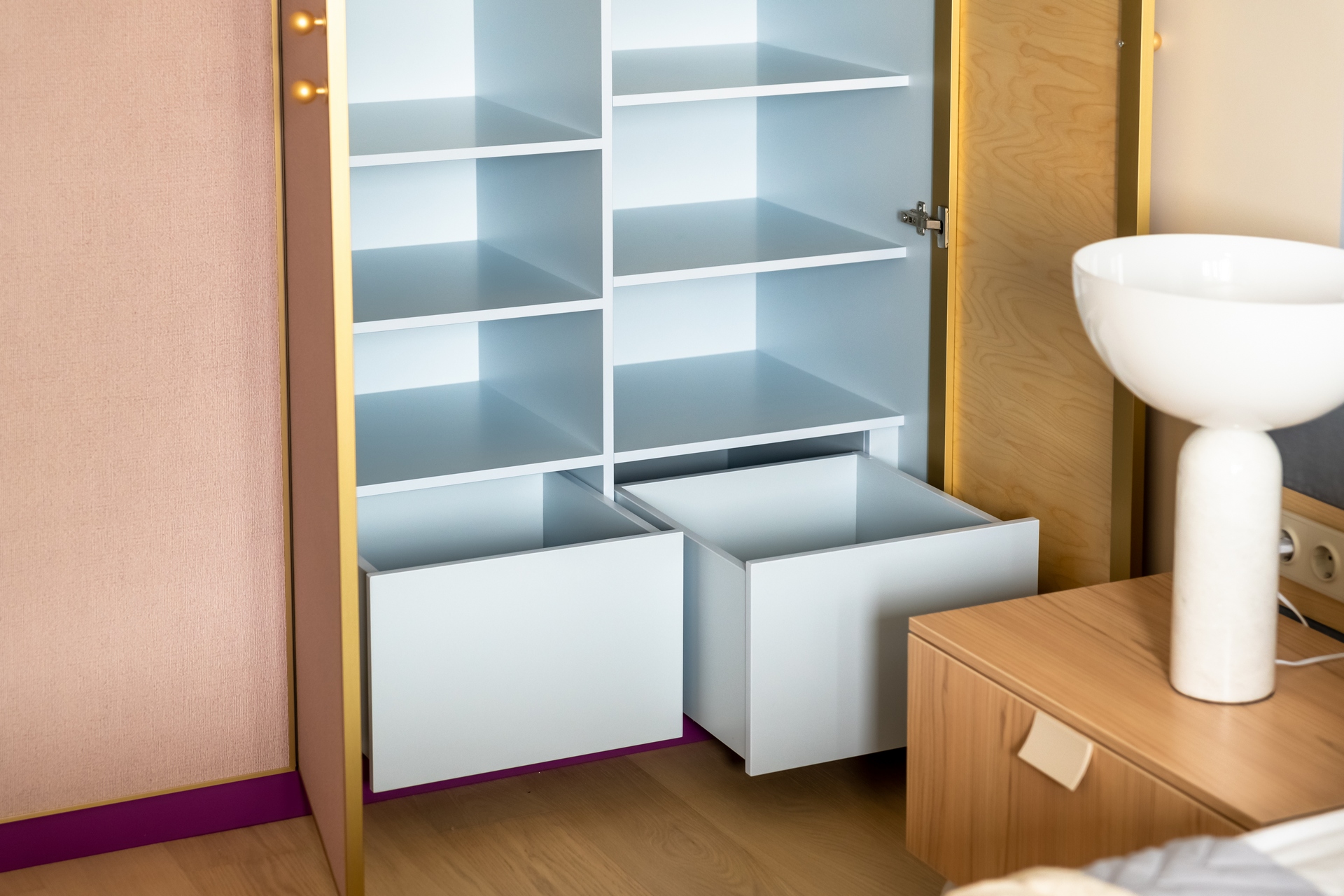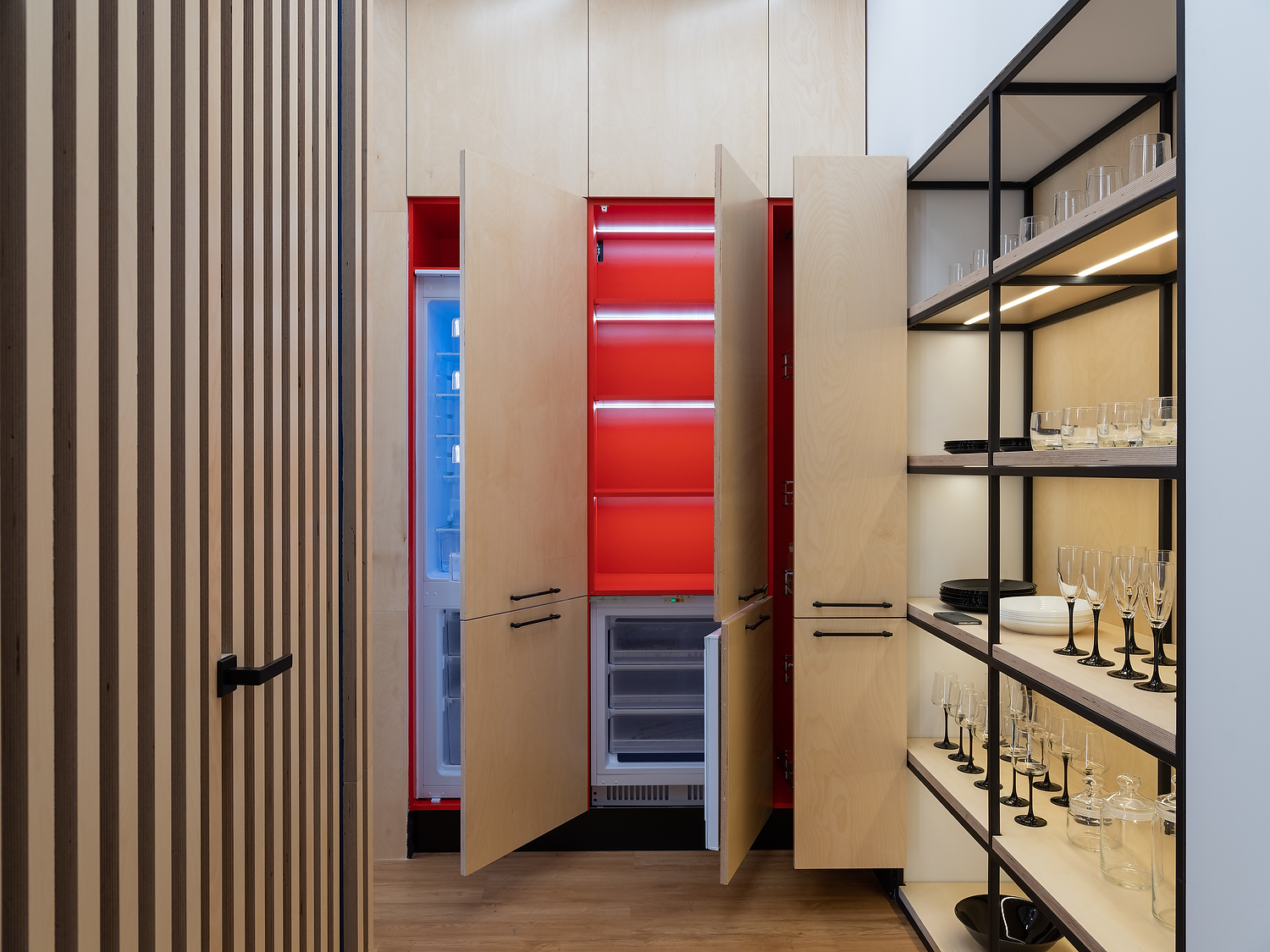 ЛДСП Lamarty широко используется в корпусной и встроенной мебели — от кухонь и шкафов до гостиных, офисных и торговых решений.