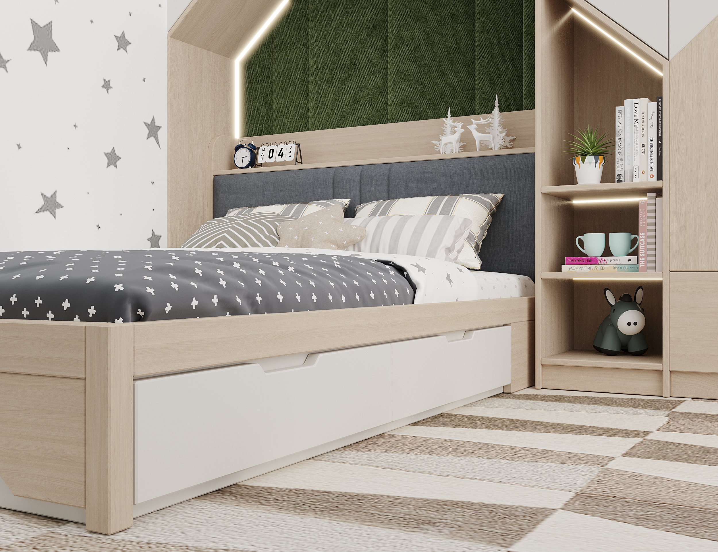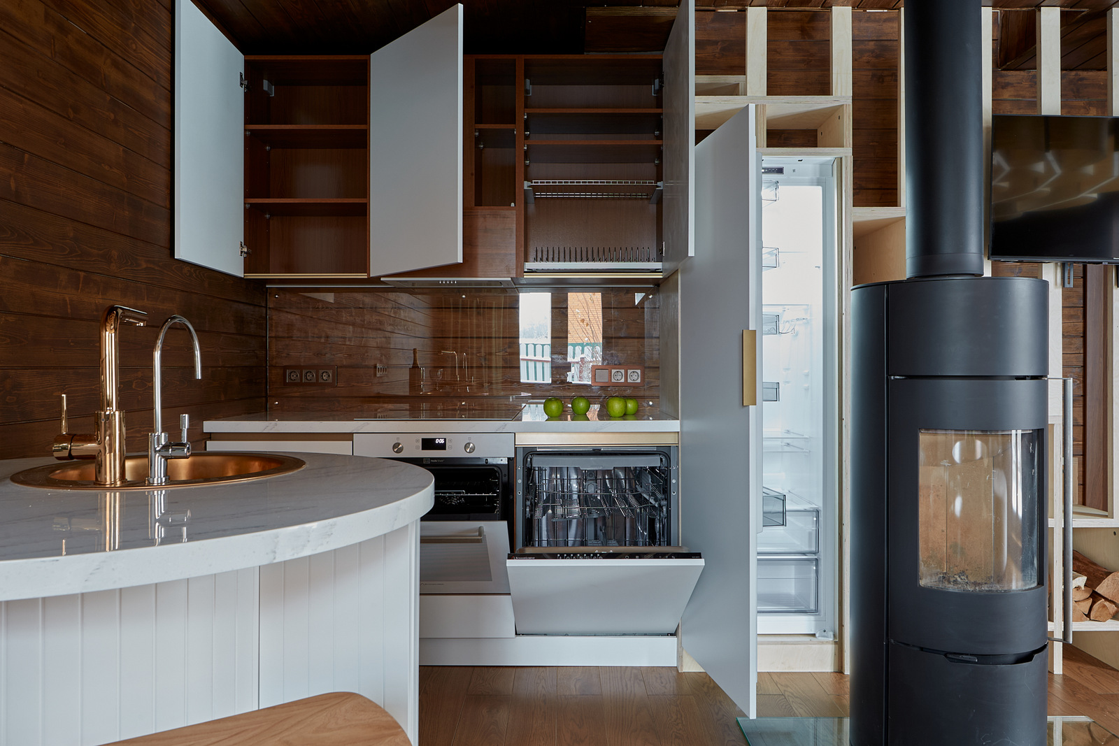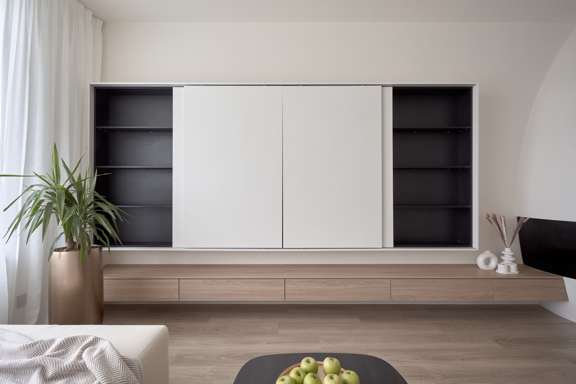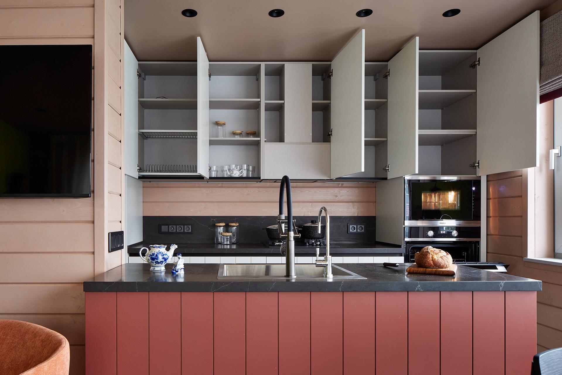 ЛДСП Lamarty широко используется в корпусной и встроенной мебели — от кухонь и шкафов до гостиных, офисных и торговых решений.