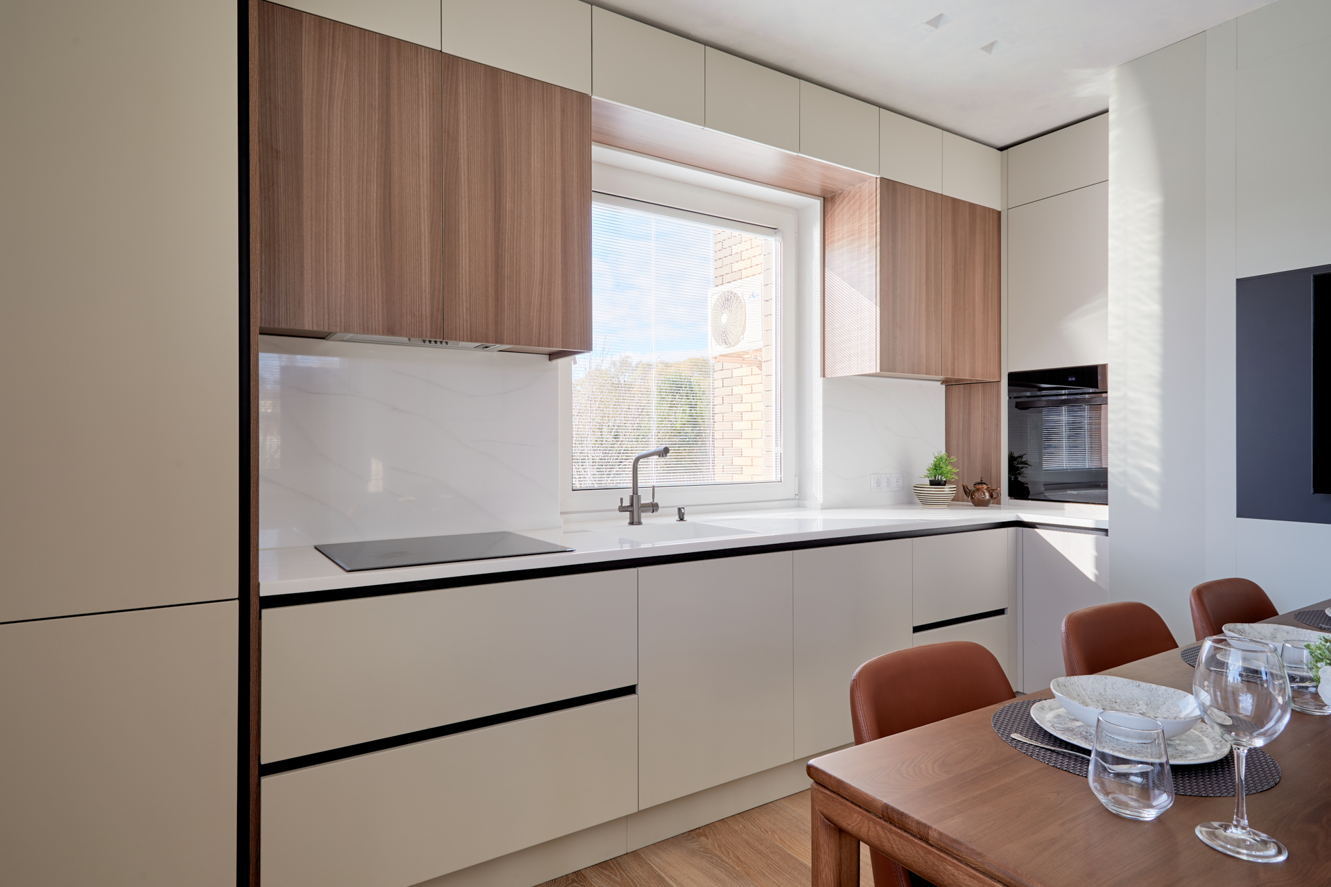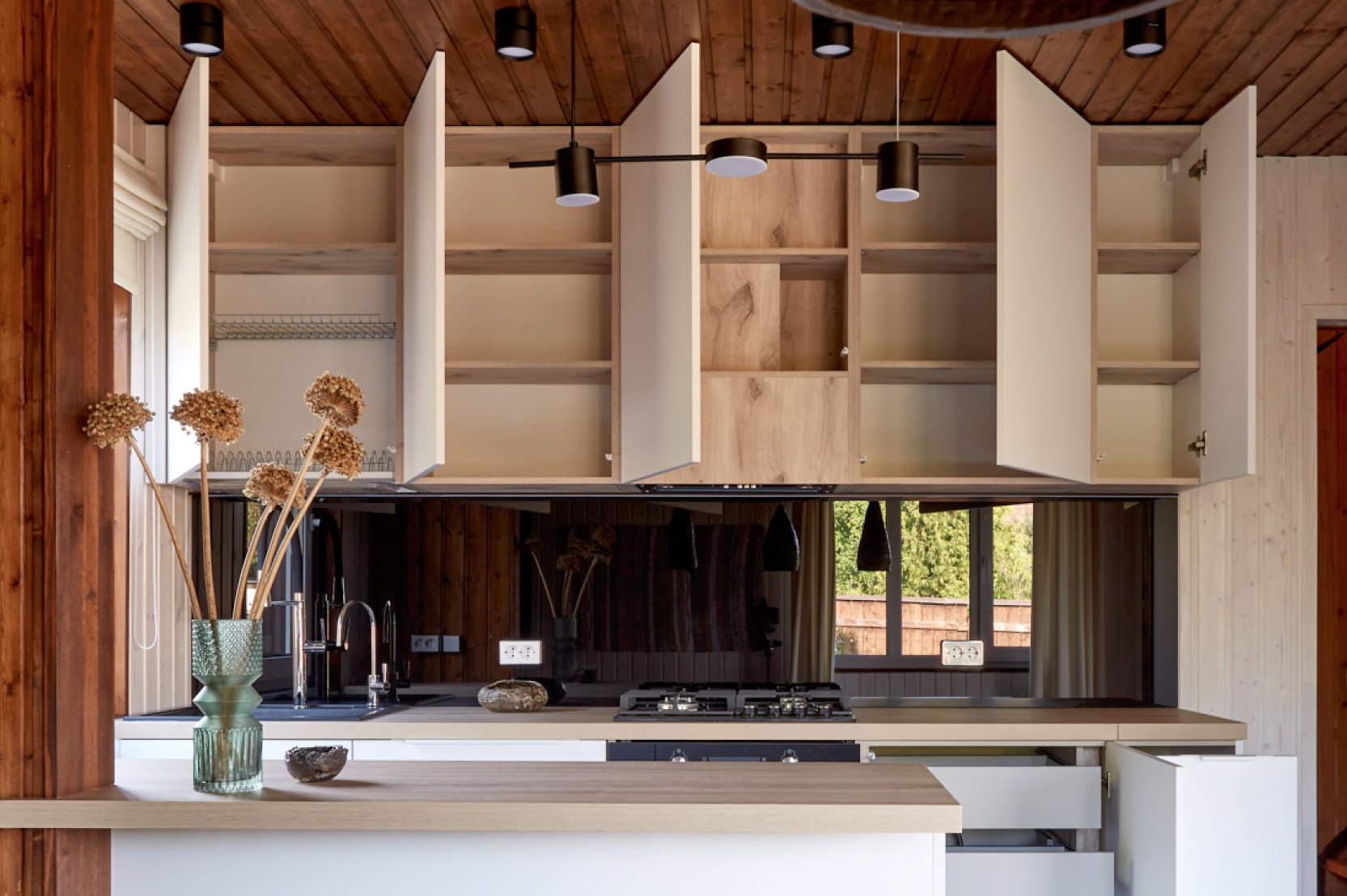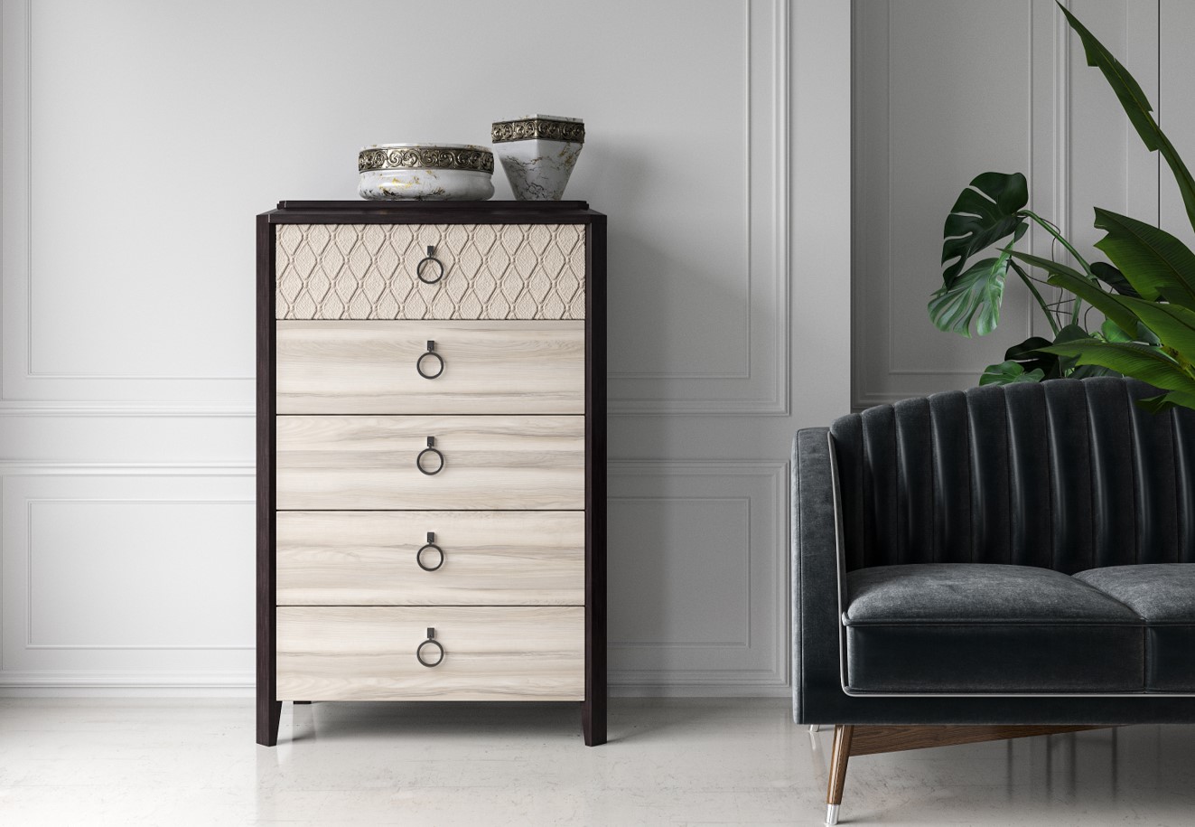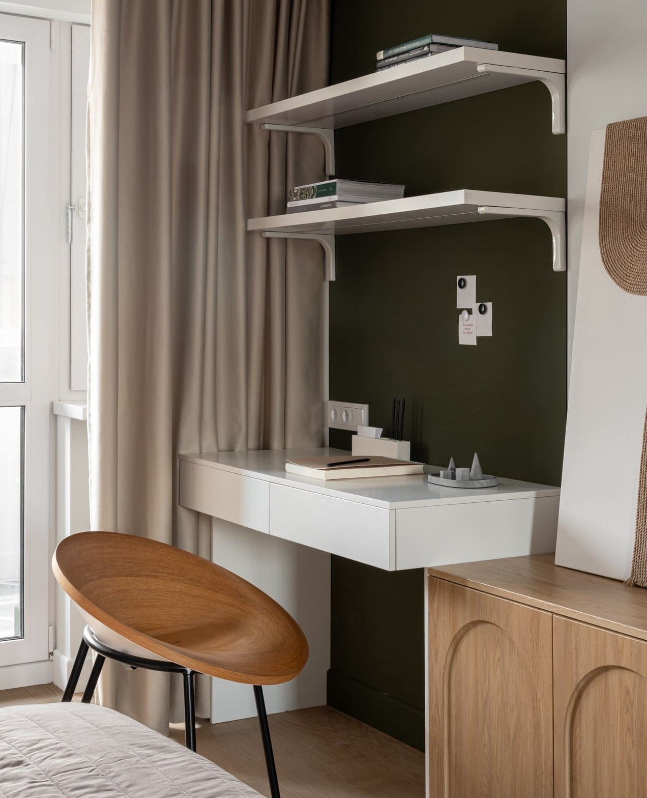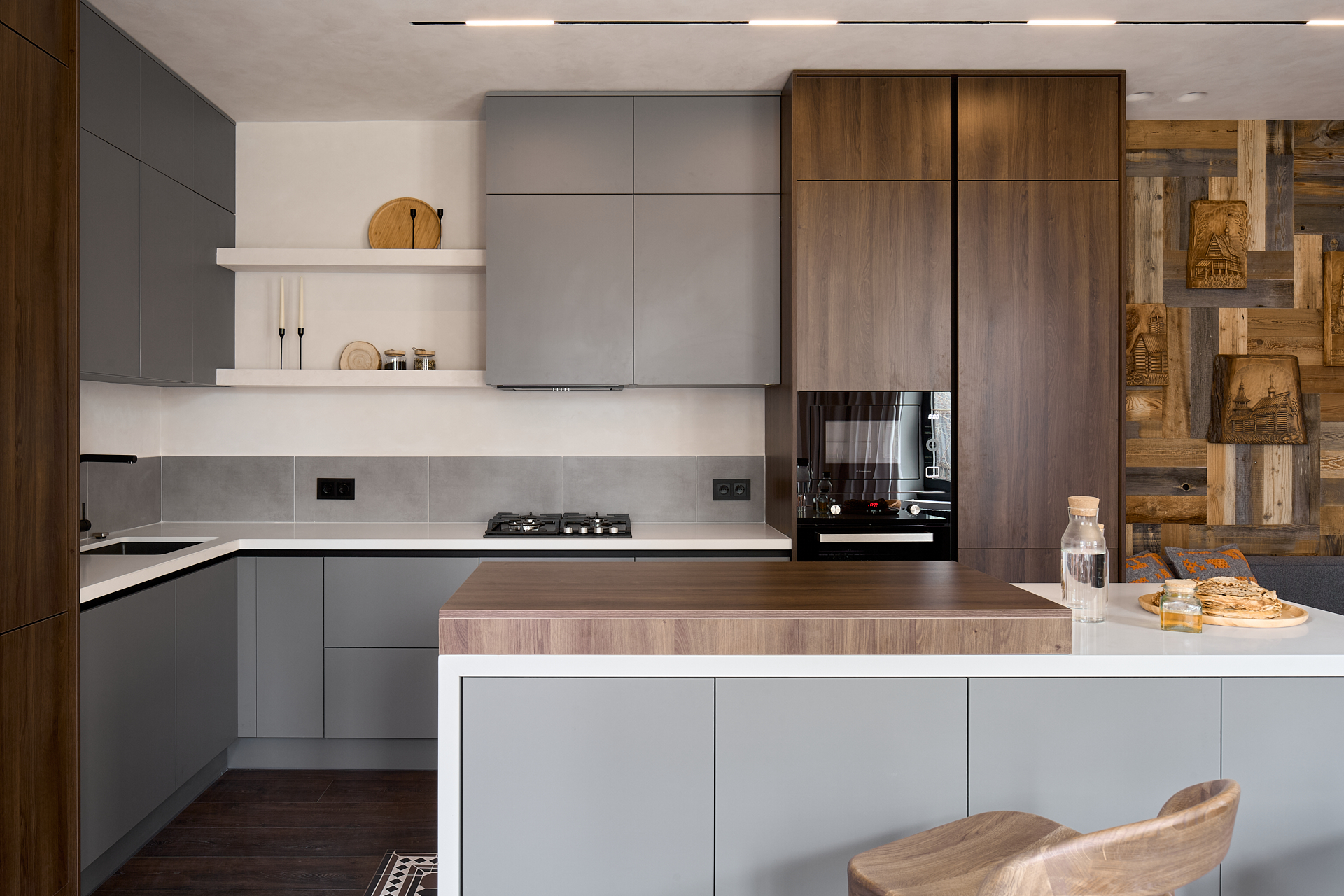 Мы не изготавливаем мебель, но знаем, что при выборе декора важно увидеть не только образец плиты, а то, как материал выглядит в реальных интерьерах.