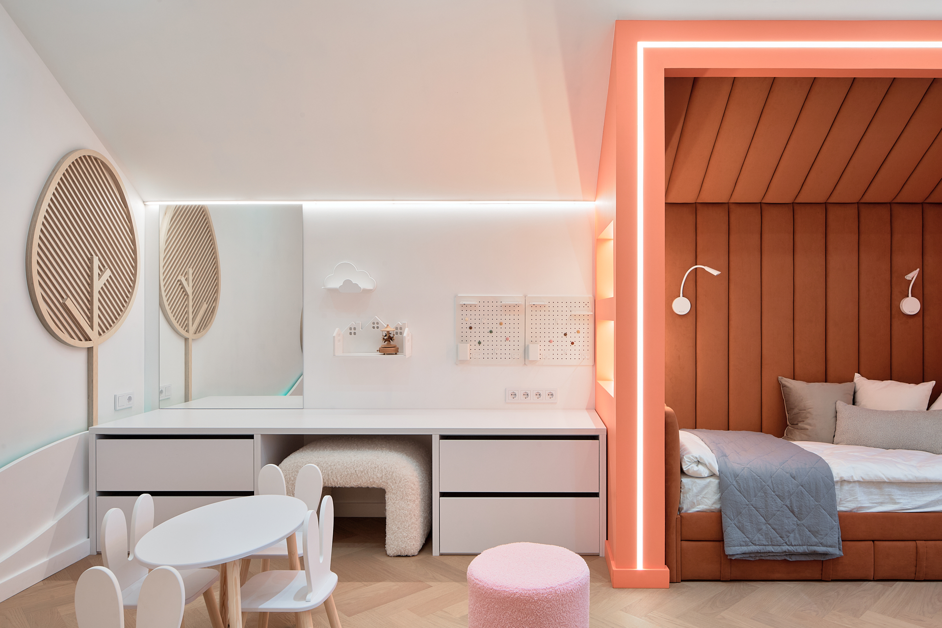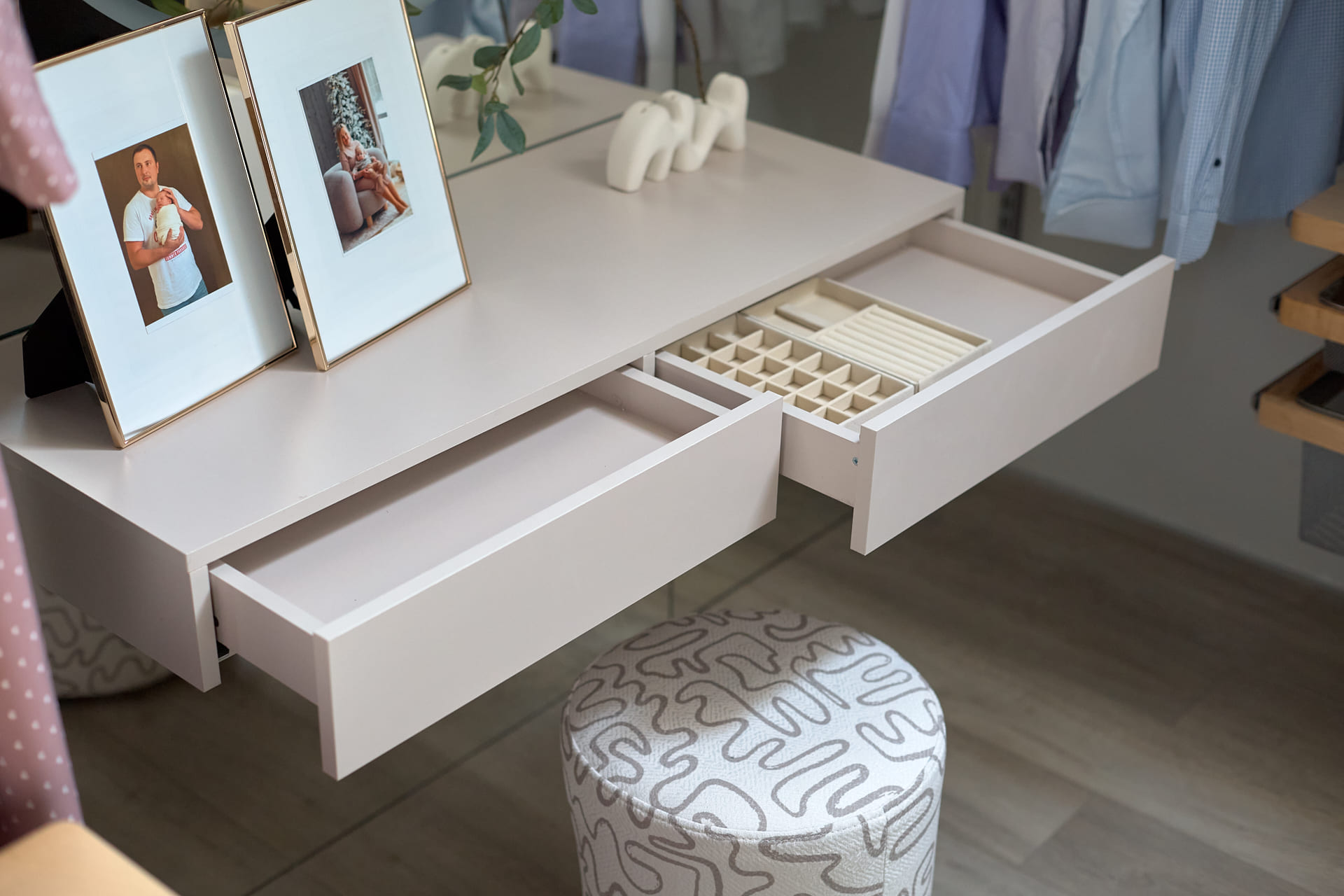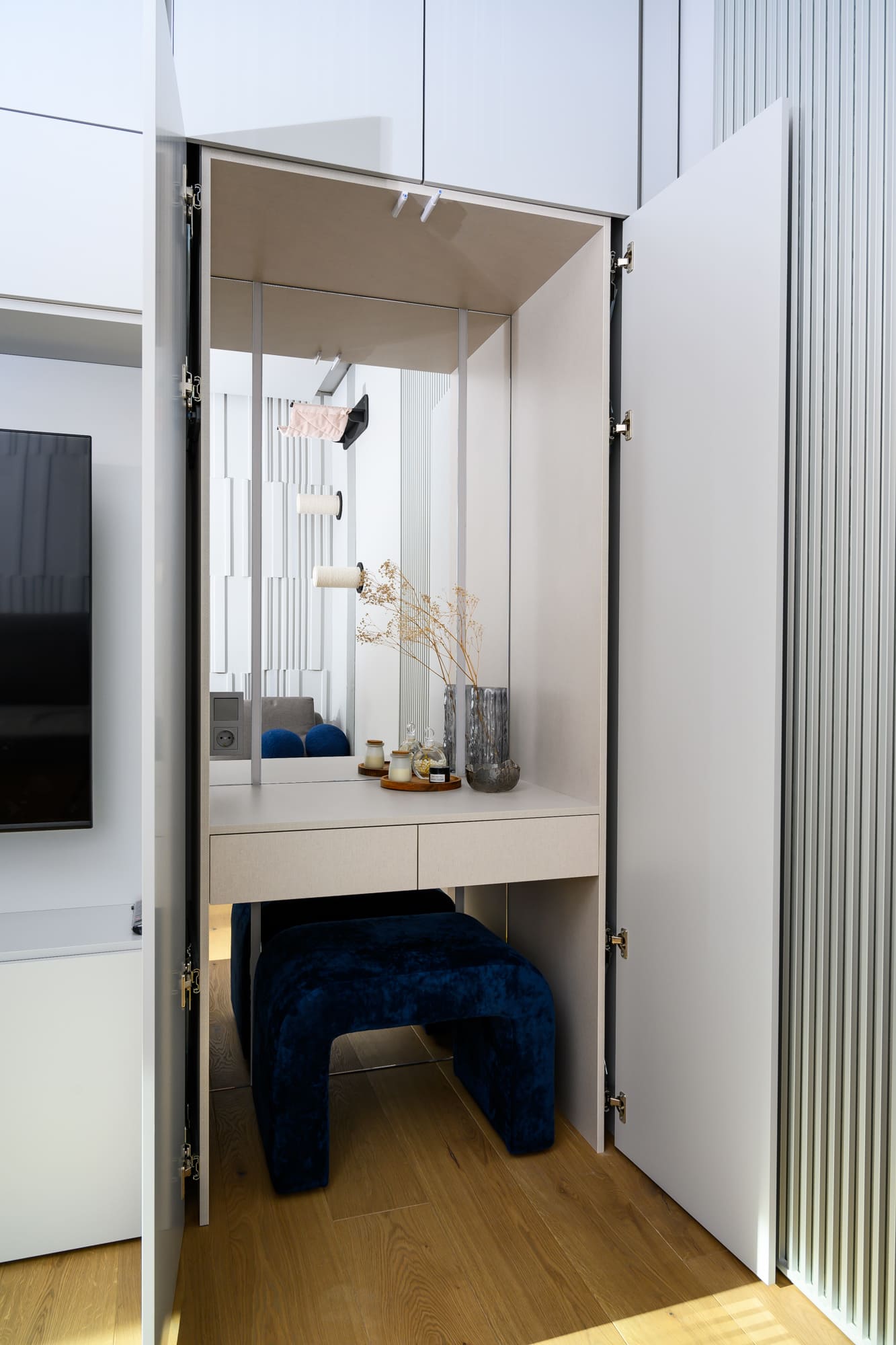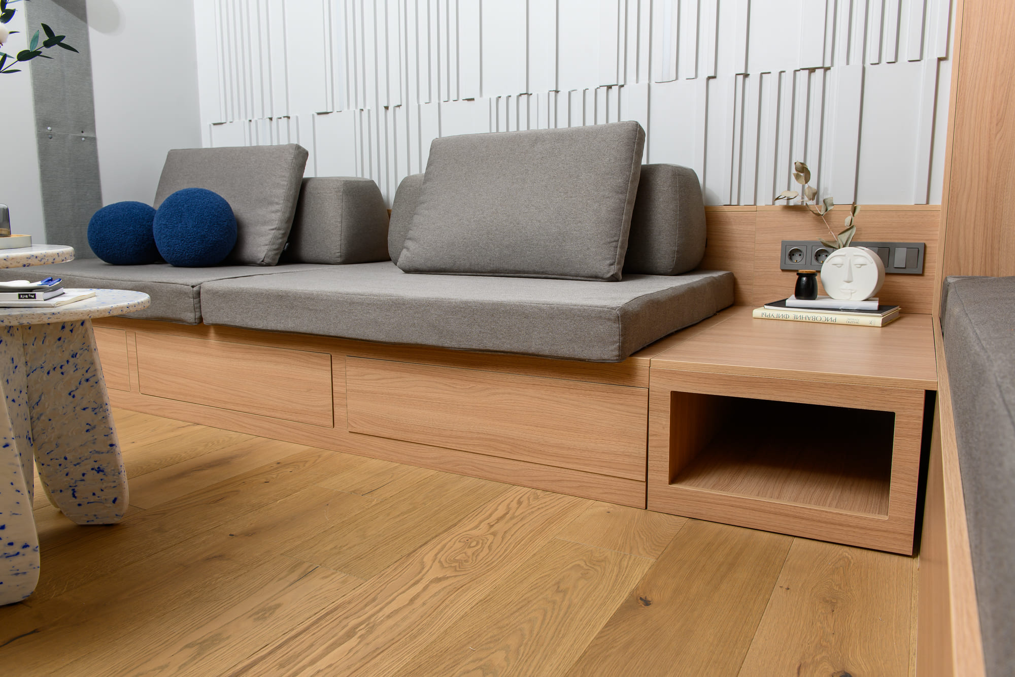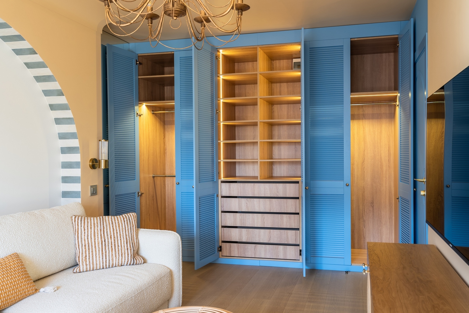 Ниже — фотографии мебели, изготовленной из ЛДСП Lamarty нашими клиентами и партнёрами. Эти примеры показывают, как декоры, текстуры и оттенки раскрываются в готовых изделиях — в сочетании с фурнитурой, освещением и интерьерными решениями.